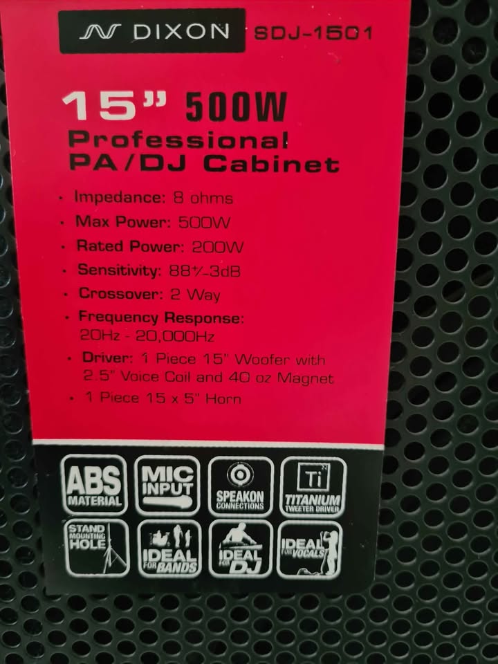 It's designed for venues accommodating around 250 people. The speaker delivers continuous sound at 250W and peaks at 500W. It features a 15-inch driver and Piezo tweeter for clear audio. The speaker casing is made of Medium Density Fibreboard with a polyurethane coating for durability and sound quality. It's suitable for events, parties, and celebrations. It can be used as a foundational support for events needing sound reinforcement. The speaker is designed to handle tonal shifts and bass-heavy notes without distortion. It's encased to keep out unwanted vibration.