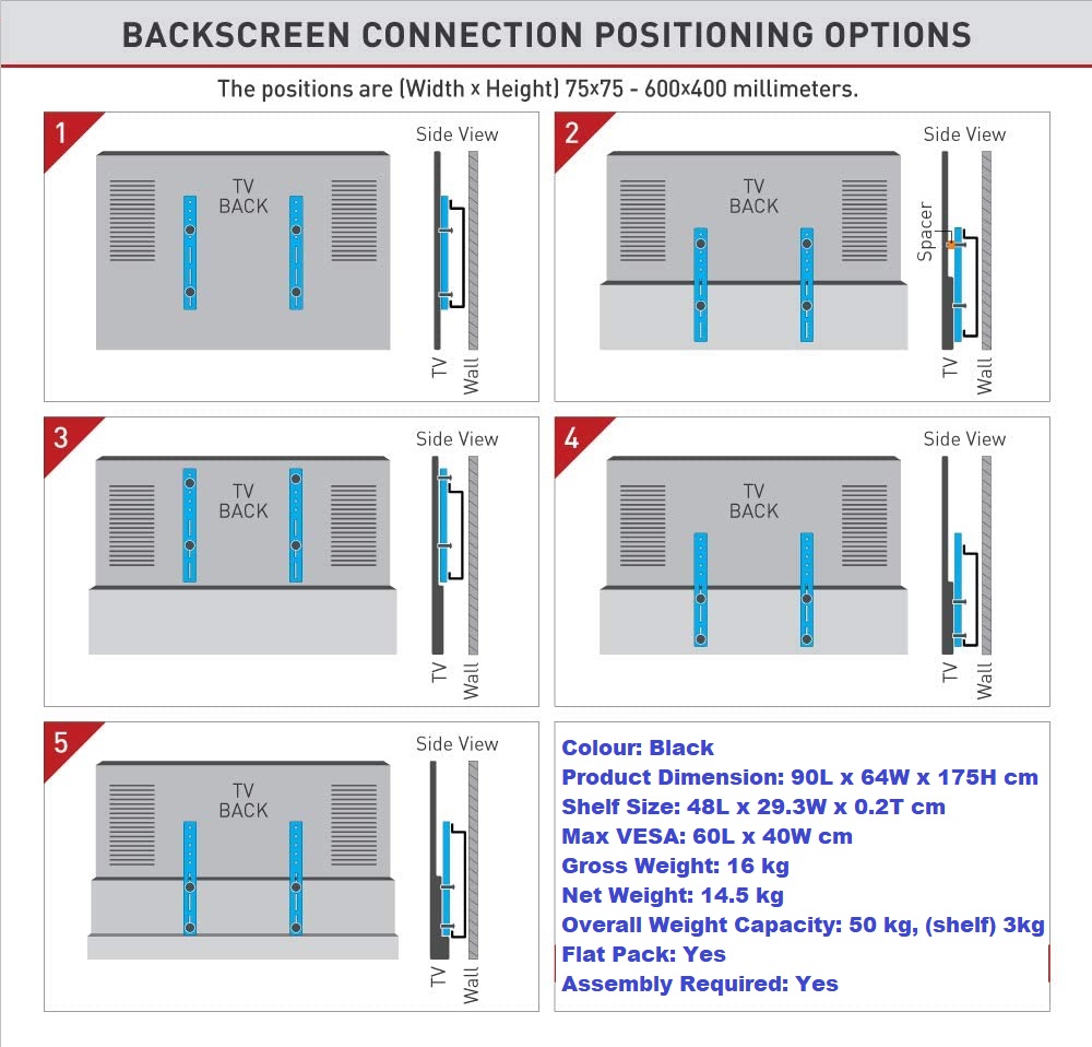 - Black steel Shelf to hold AV devices, DVD player, games console, PC, projectors, etc.