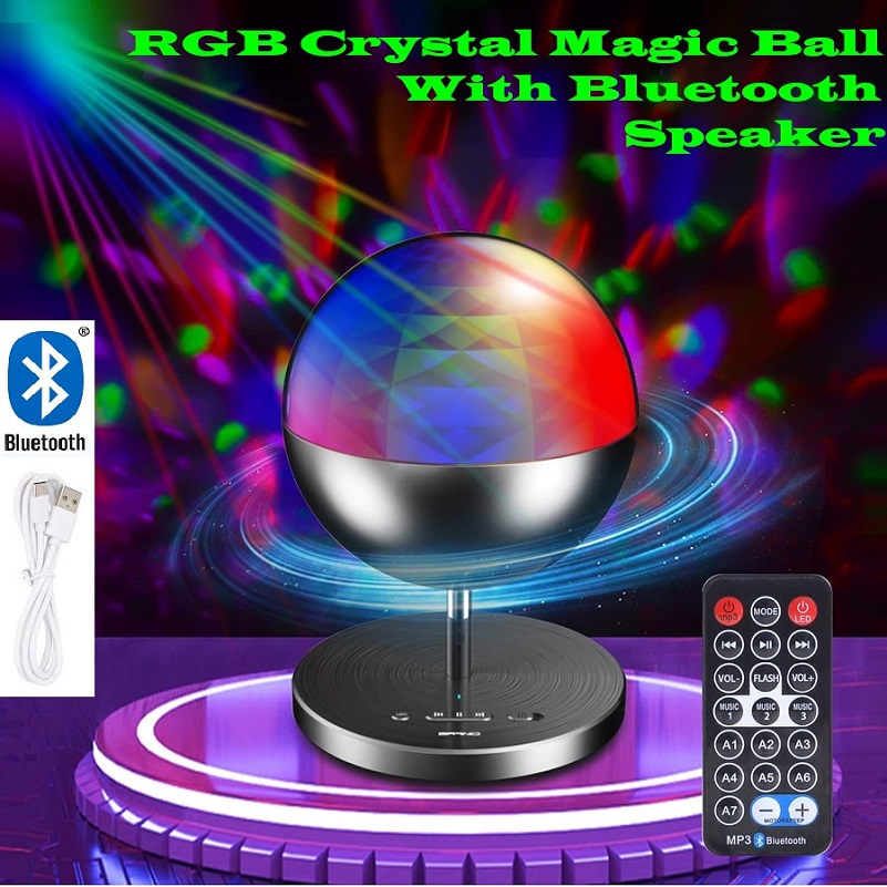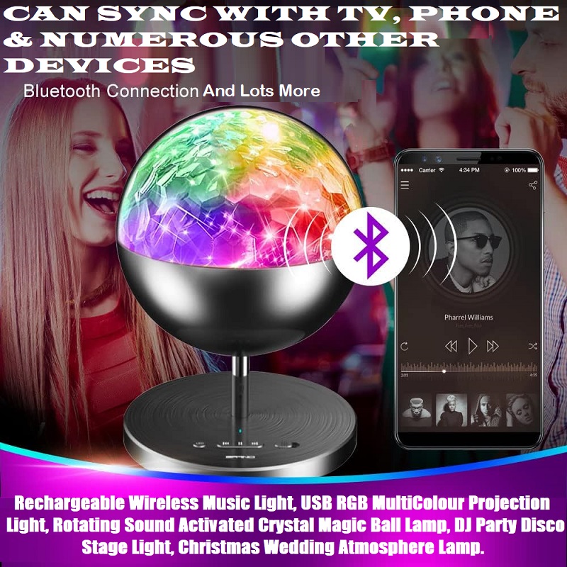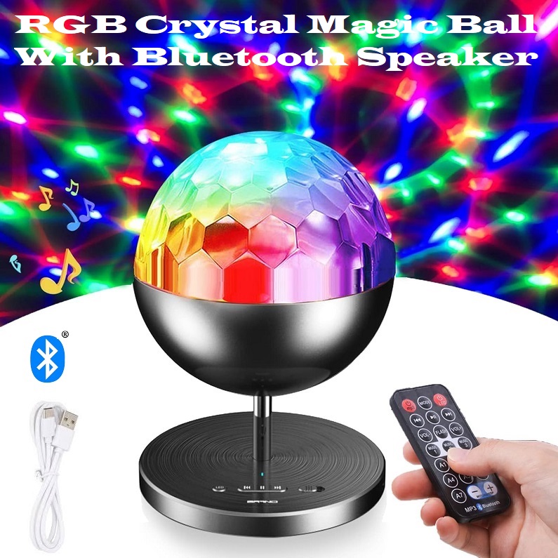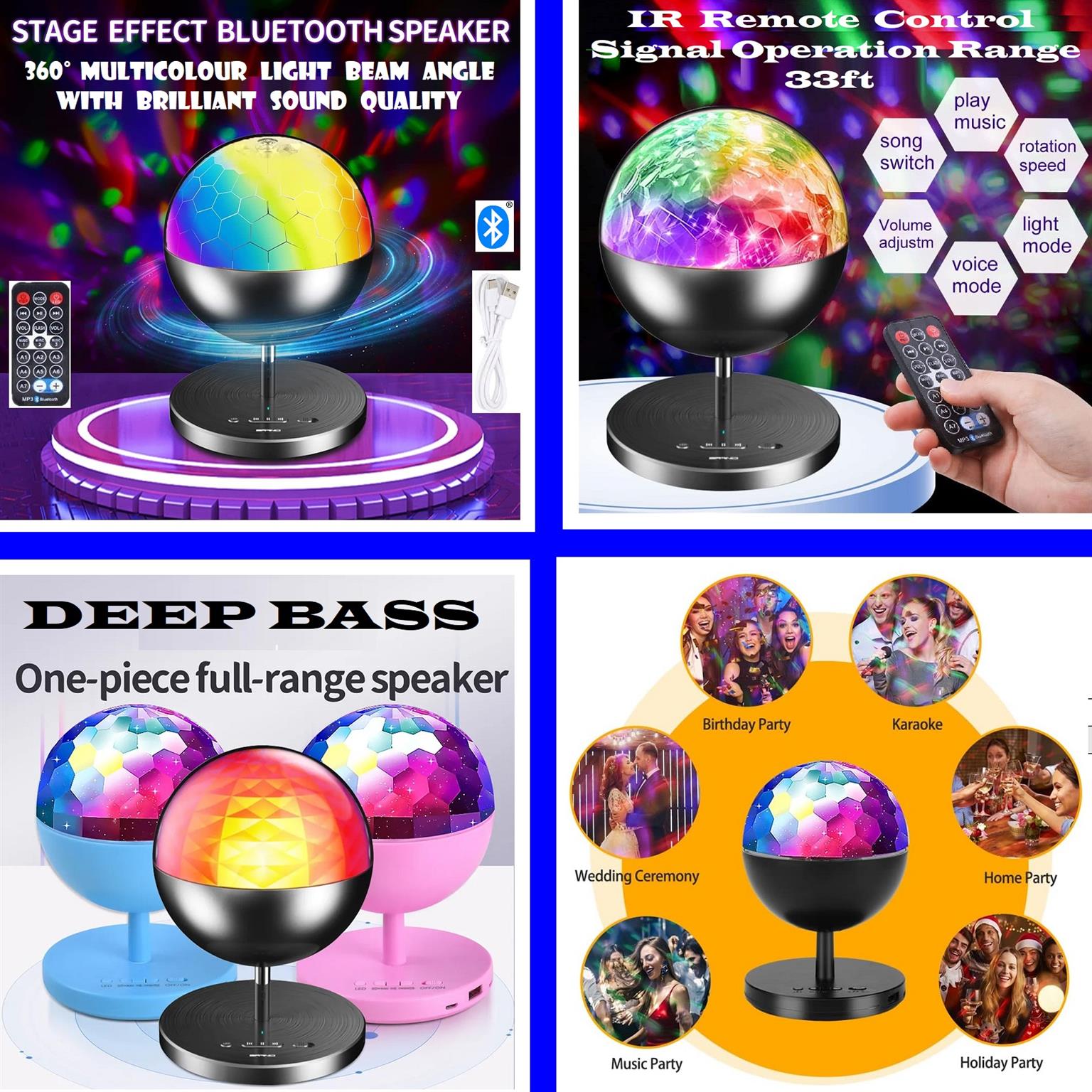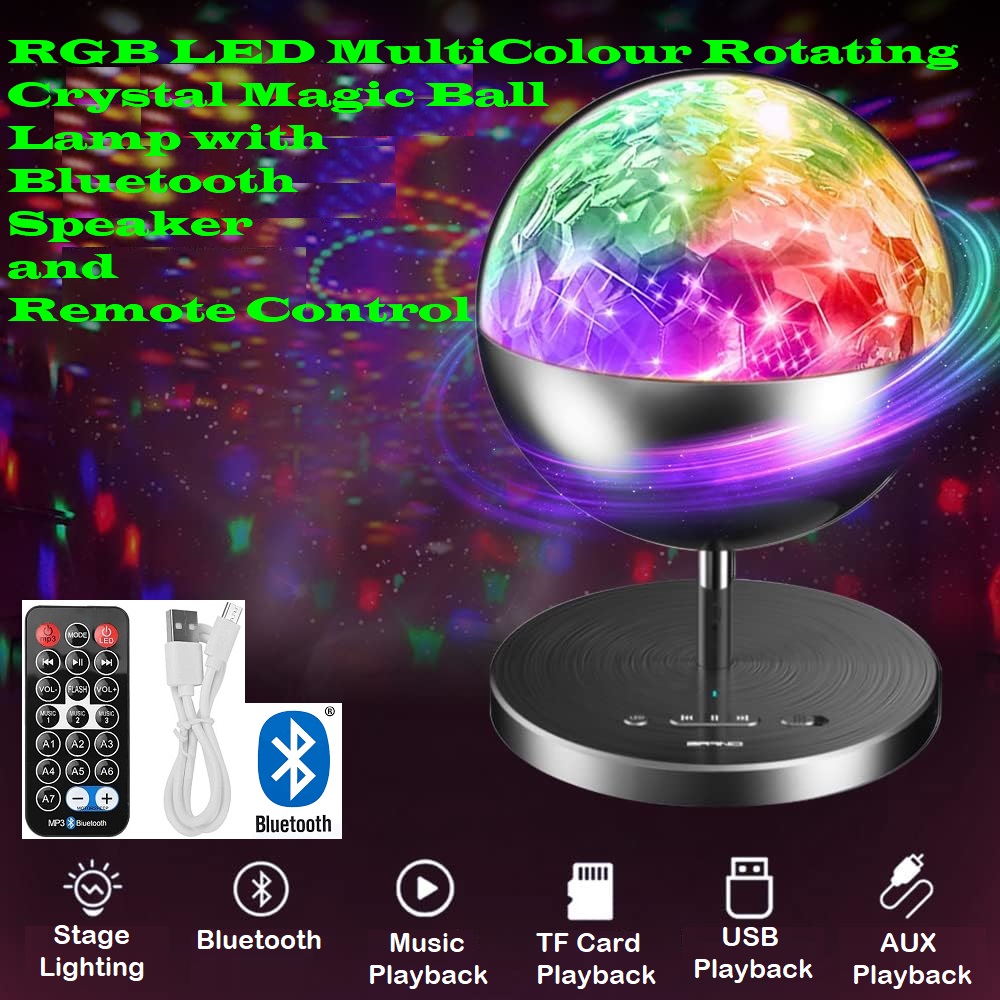 Rechargeable MultiColour LED Wireless Bluetooth Speaker Music Rotating Crystal Magic Ball Lamp.