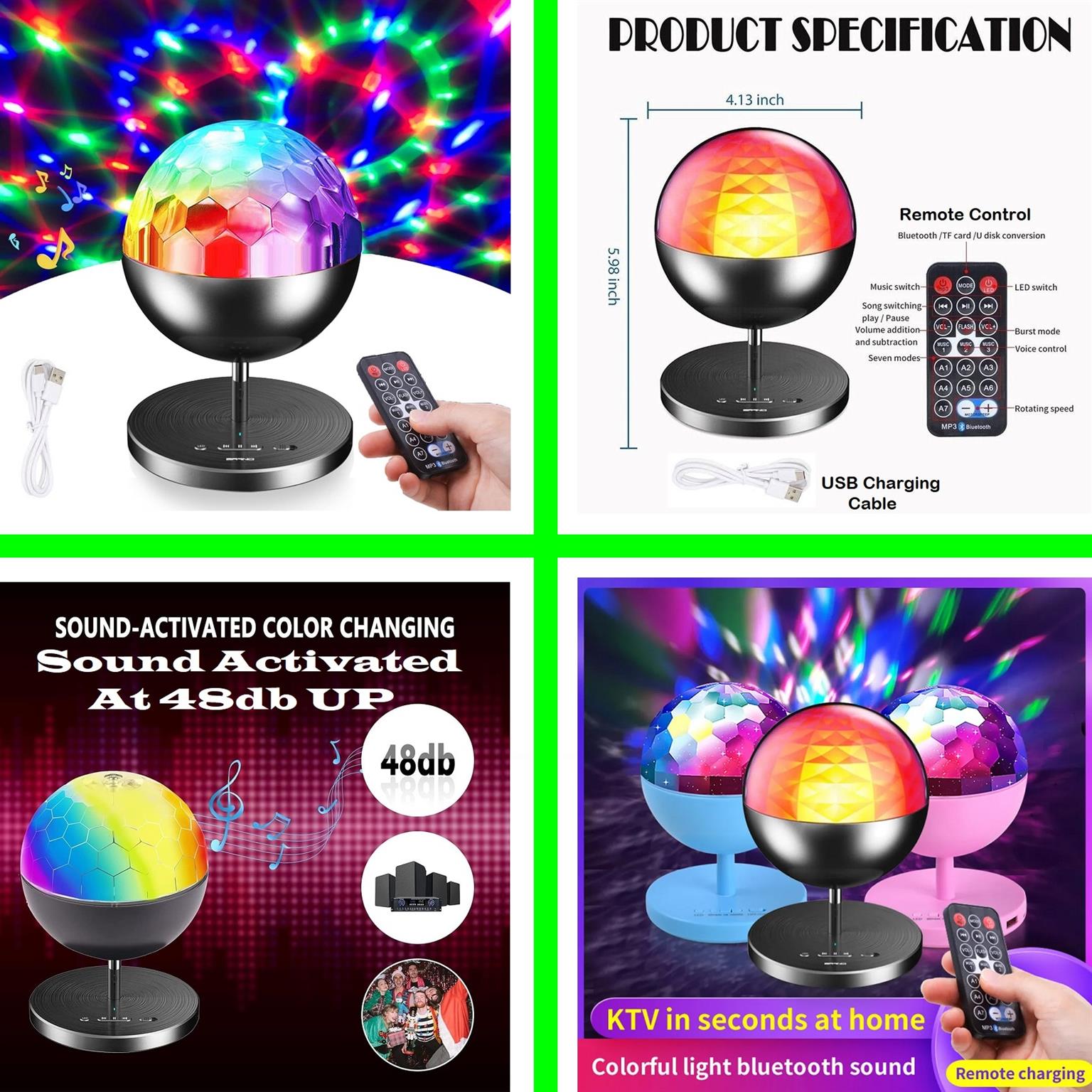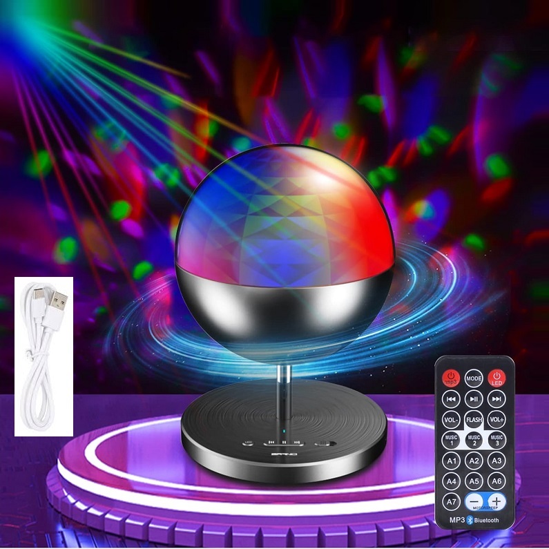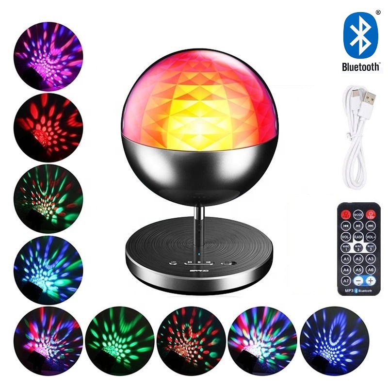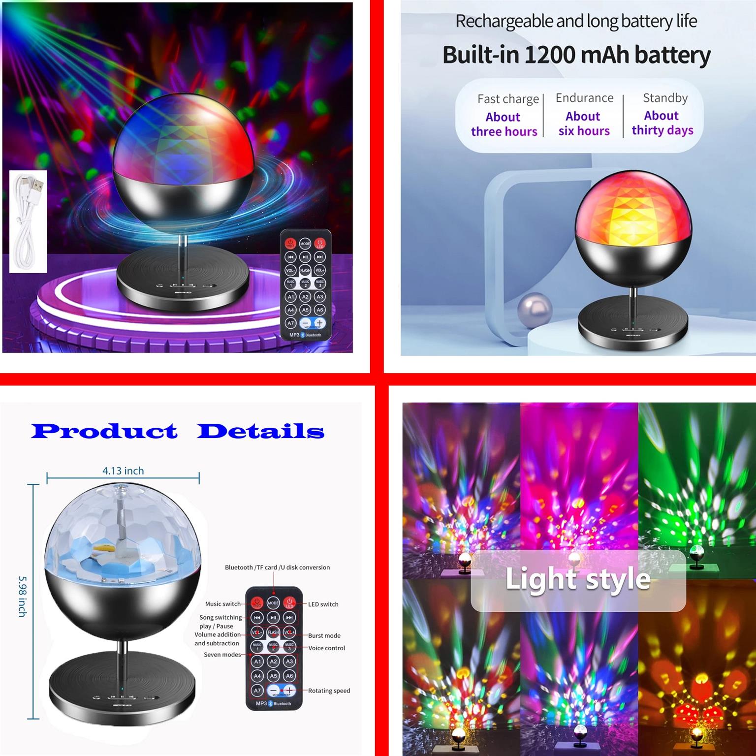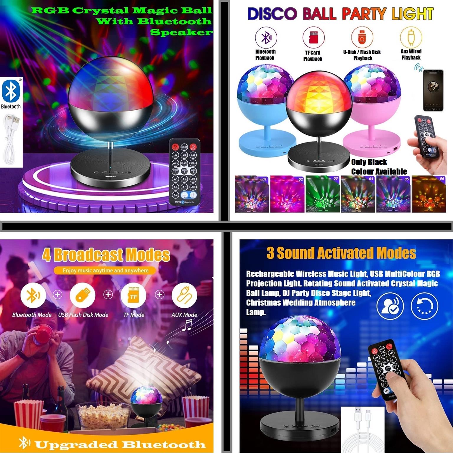 Rechargeable MultiColour LED Wireless Bluetooth Speaker Music Rotating Crystal Magic Ball Lamp.