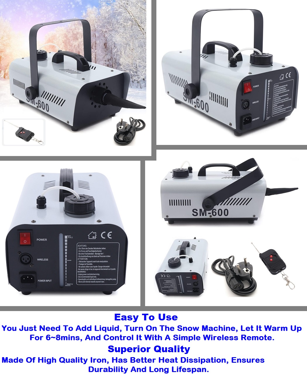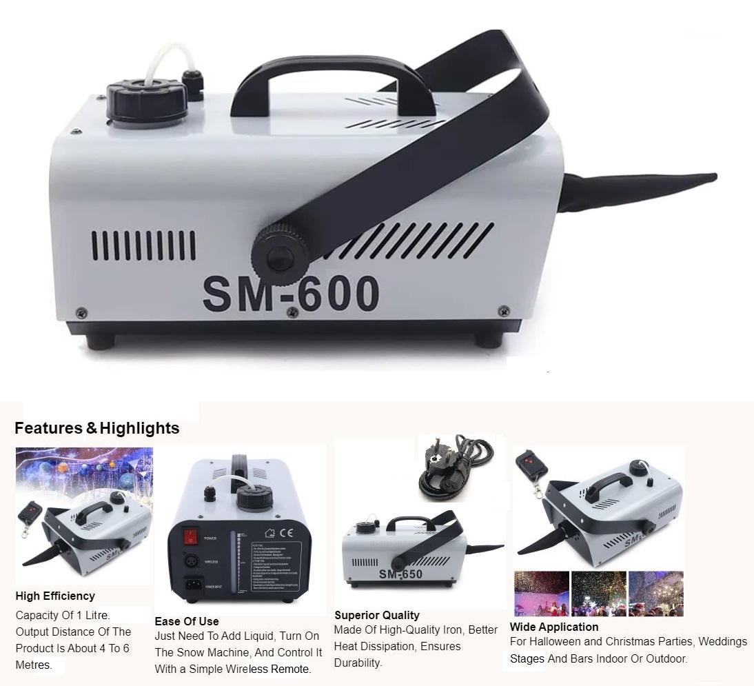 Stunning 600W Snow Making Machine, Wireless Remote Control Snowflake Maker 220V.