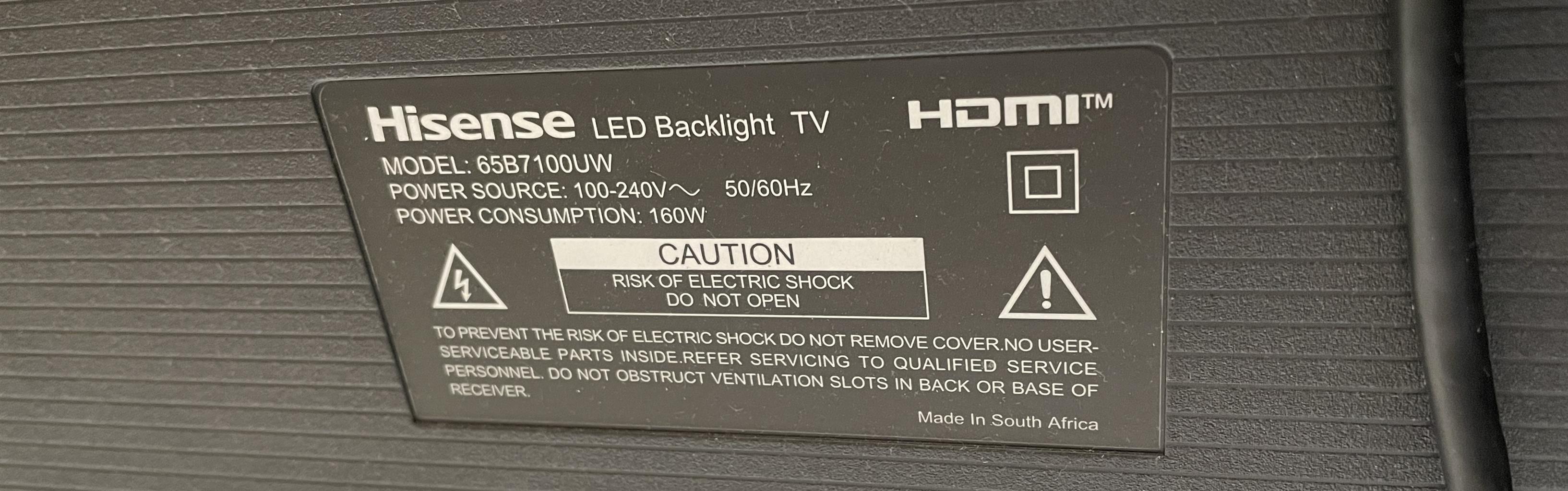 Hisense smart tv backlight HDMI model 65B7 100UW. Comes with 4 year warranty