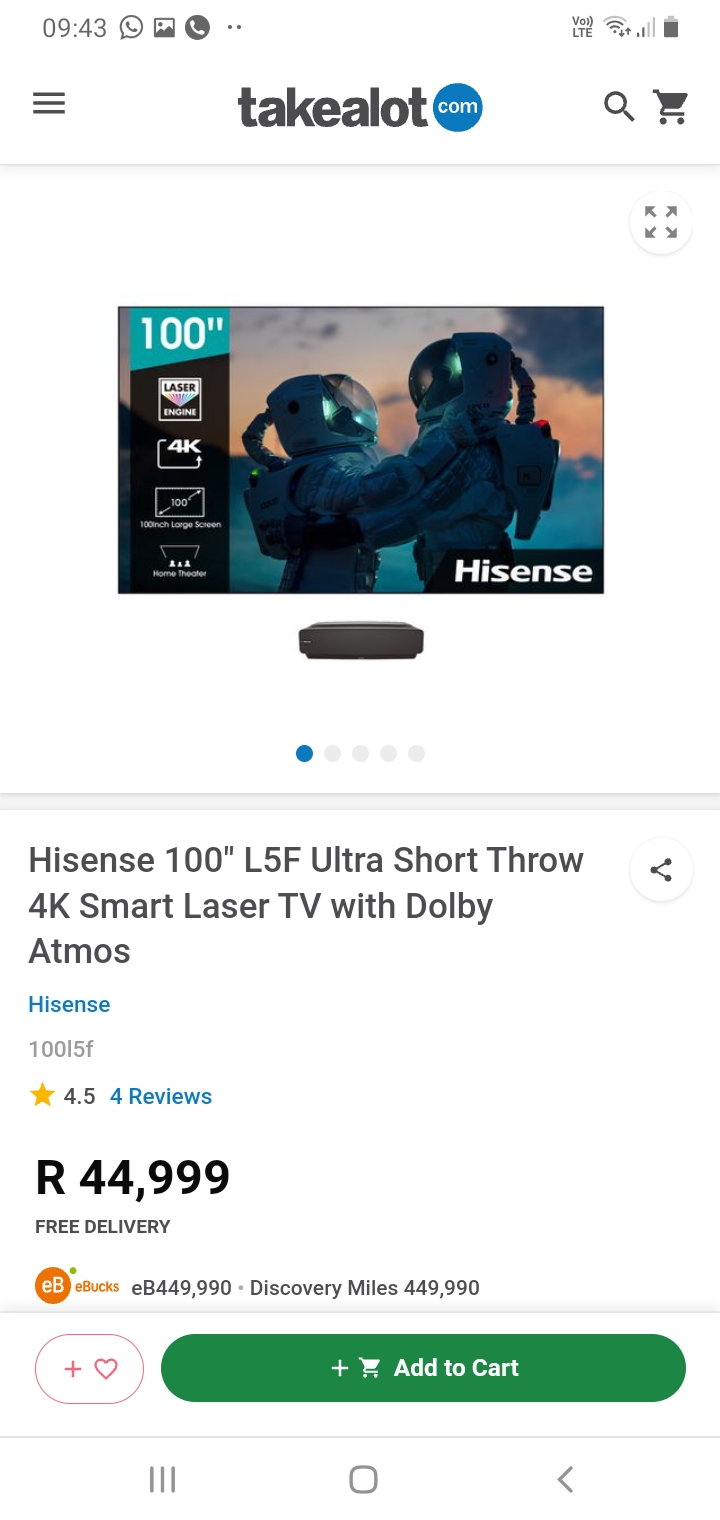 Hisense short Throw projector and screen, smart Tv. Two months old