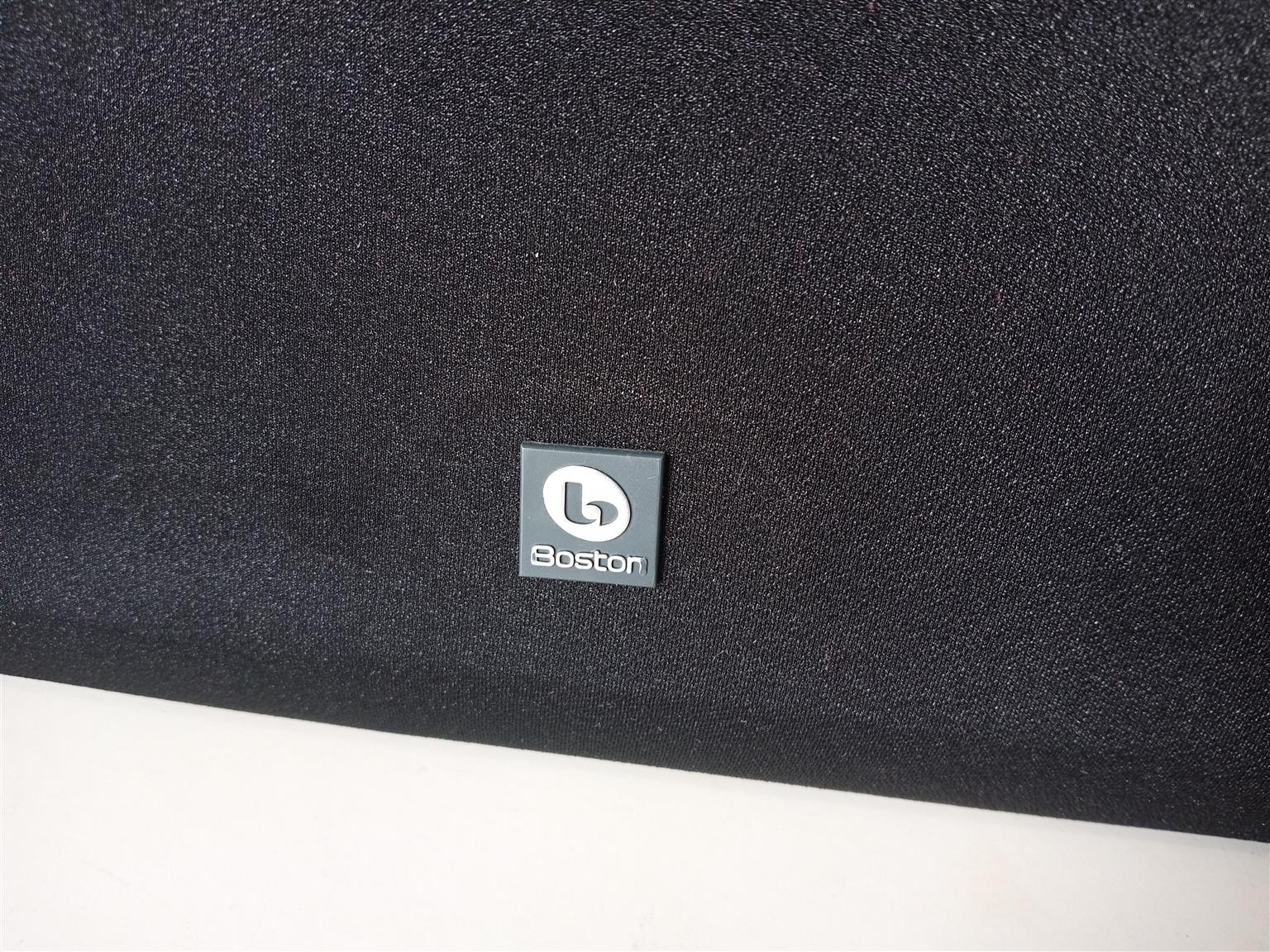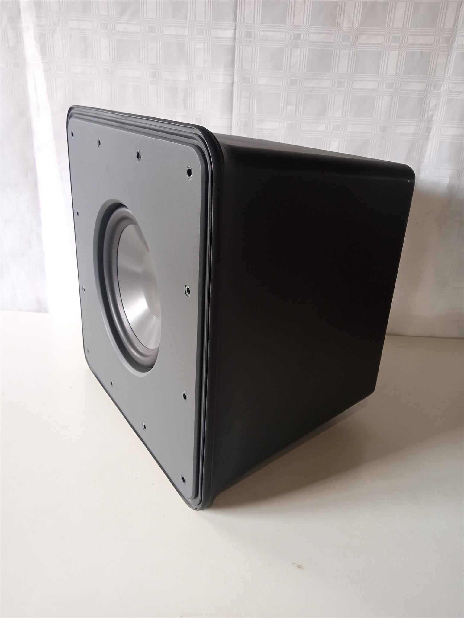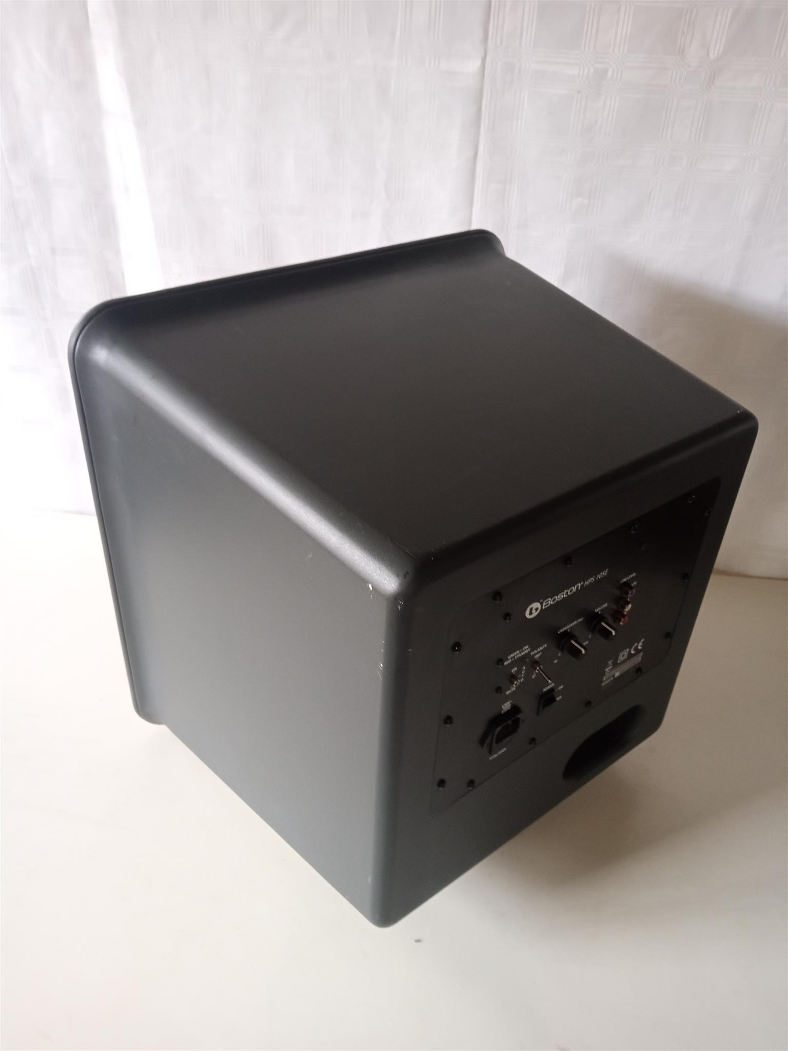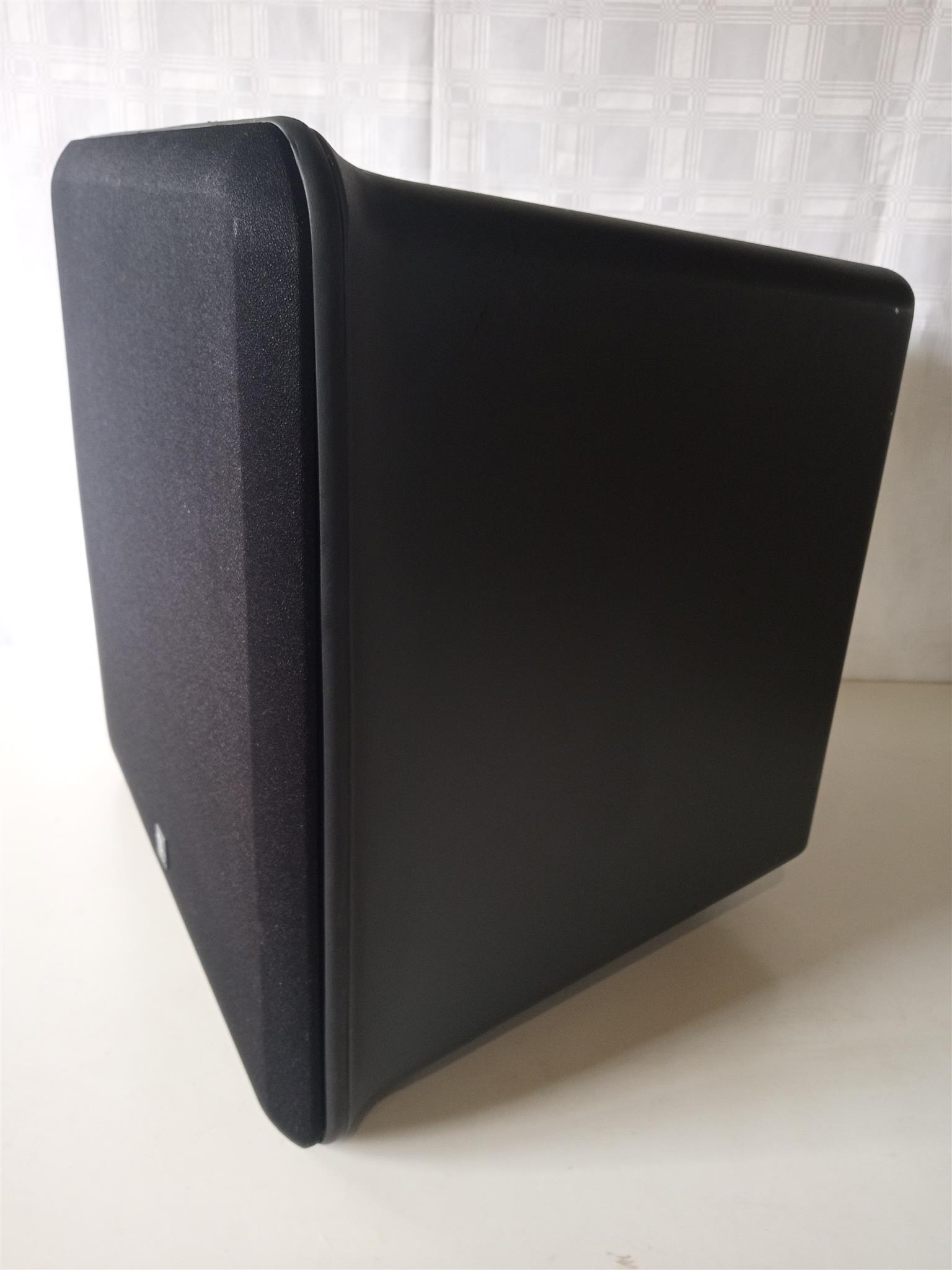 Boston Acoustics HPS10SE Front-Firing Powered Subwoofer · 10-inch woofer cone · 150 watts RMS · High-output front firing, rear ported DCD driver. The internal amplifier delivers 150W RMS of power for a strong, clear performance. The rear panel features speaker-level output connectors to connect to a variety of home theater and music systems. A volume control and phase switch let you adjust the volume to suit your preferences and sync the subwoofer output to your speakers.