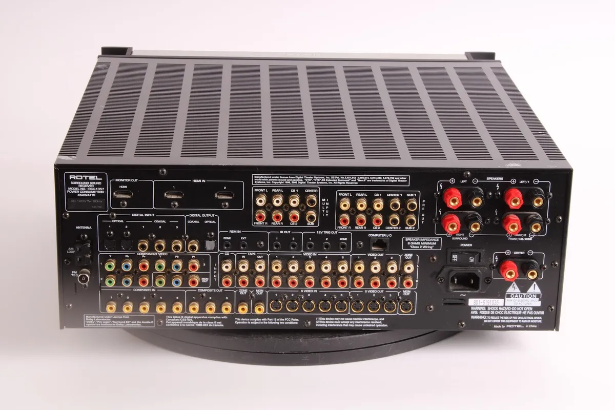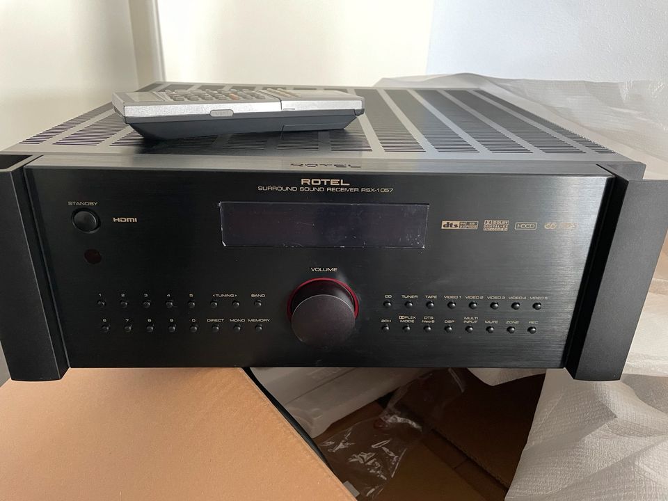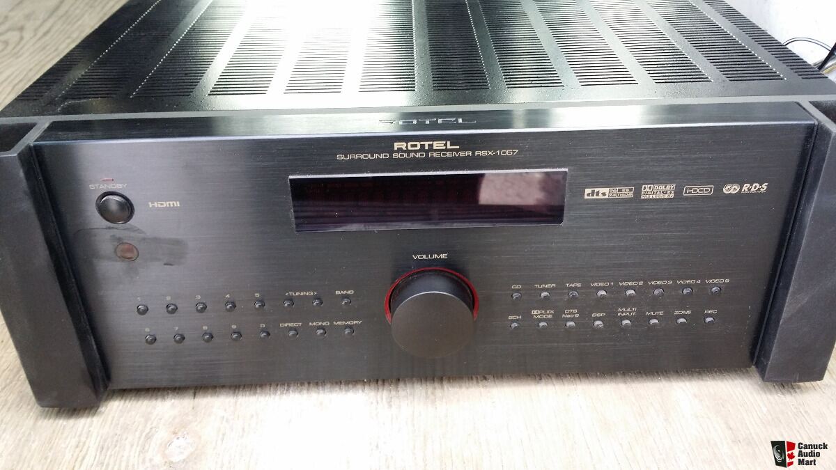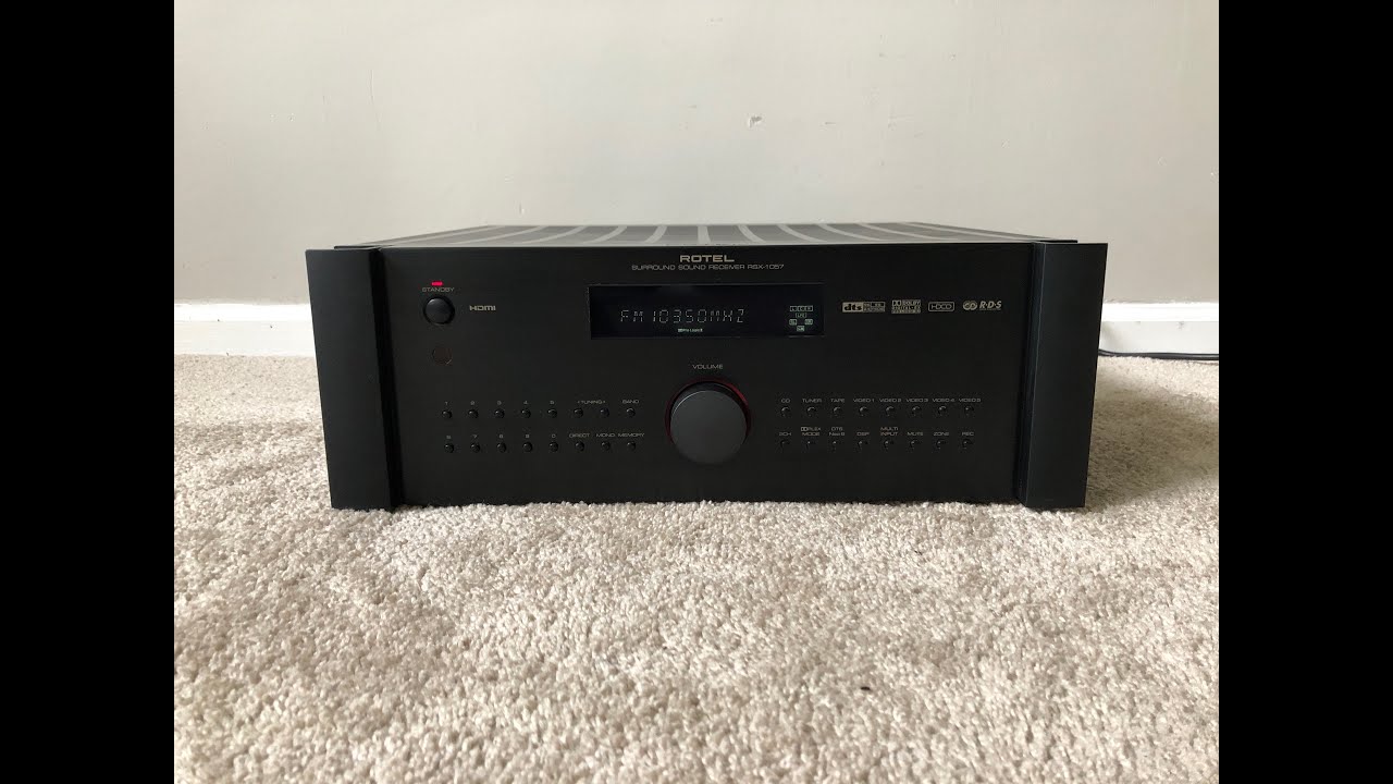 1. Rotel Surround Sound Receiver RSX 1057 - RSX-1057 distinguishes itself from the competition during actual use with an overbuilt power supply that delivers the extreme voltage and current required during those explosive soundtracks so prevalent in today's movies. The high current amplifier section puts a full 75 watts RMS per channel at your sonic disposal (that's with all five channels driven simultaneously from 20 Hz to 20 kHz with no more than 0.05% THD!). Full 7.1 surround capability. The RSX-1057 features an option that provides for the simple addition of a two-channel amplifier to expand your home theater options to full 7.1 should you desire it.