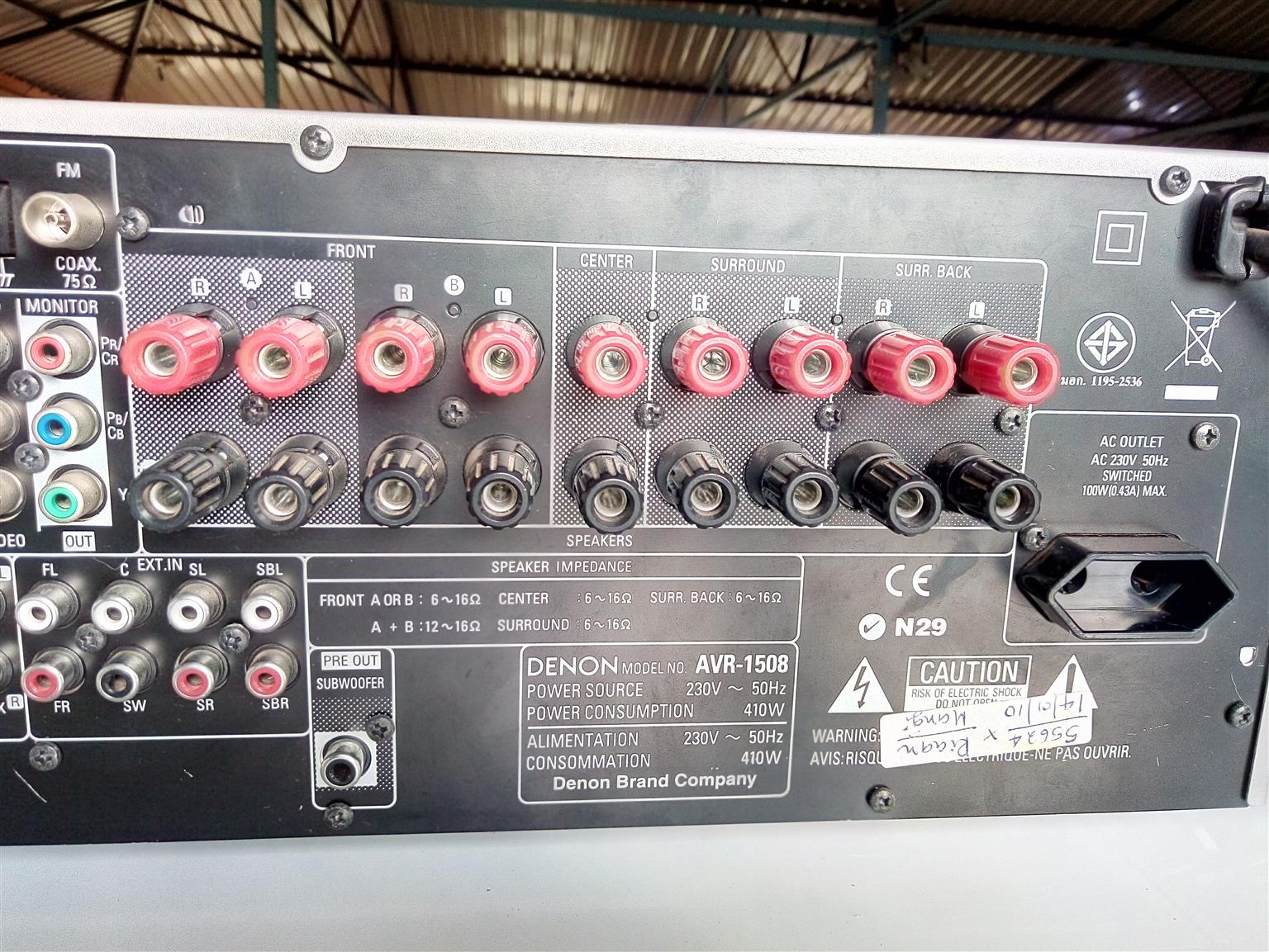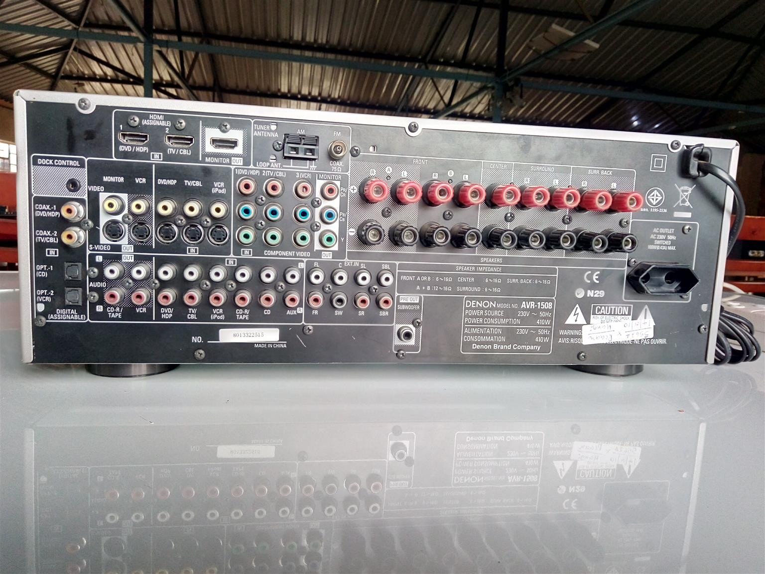 Denon Surround Receiver AVR-1508. 7.1 channel audio line-in. Receiver provides astounding home theatre performance. Output Power: 75 Watt @ 8 Ohm Impedance; Frequency Response 20Hz - 20kHz; Total Harmonic Distortion (THD)0.08 %, 0.7 %. Dolby Digital; HDMI; network ready when used with the optional ASD-3W/3N iPod docking station, offering expanding listening sources from your home network. AM FM tuner. Courier at the buyer's expense. Courier at the buyer's expense.