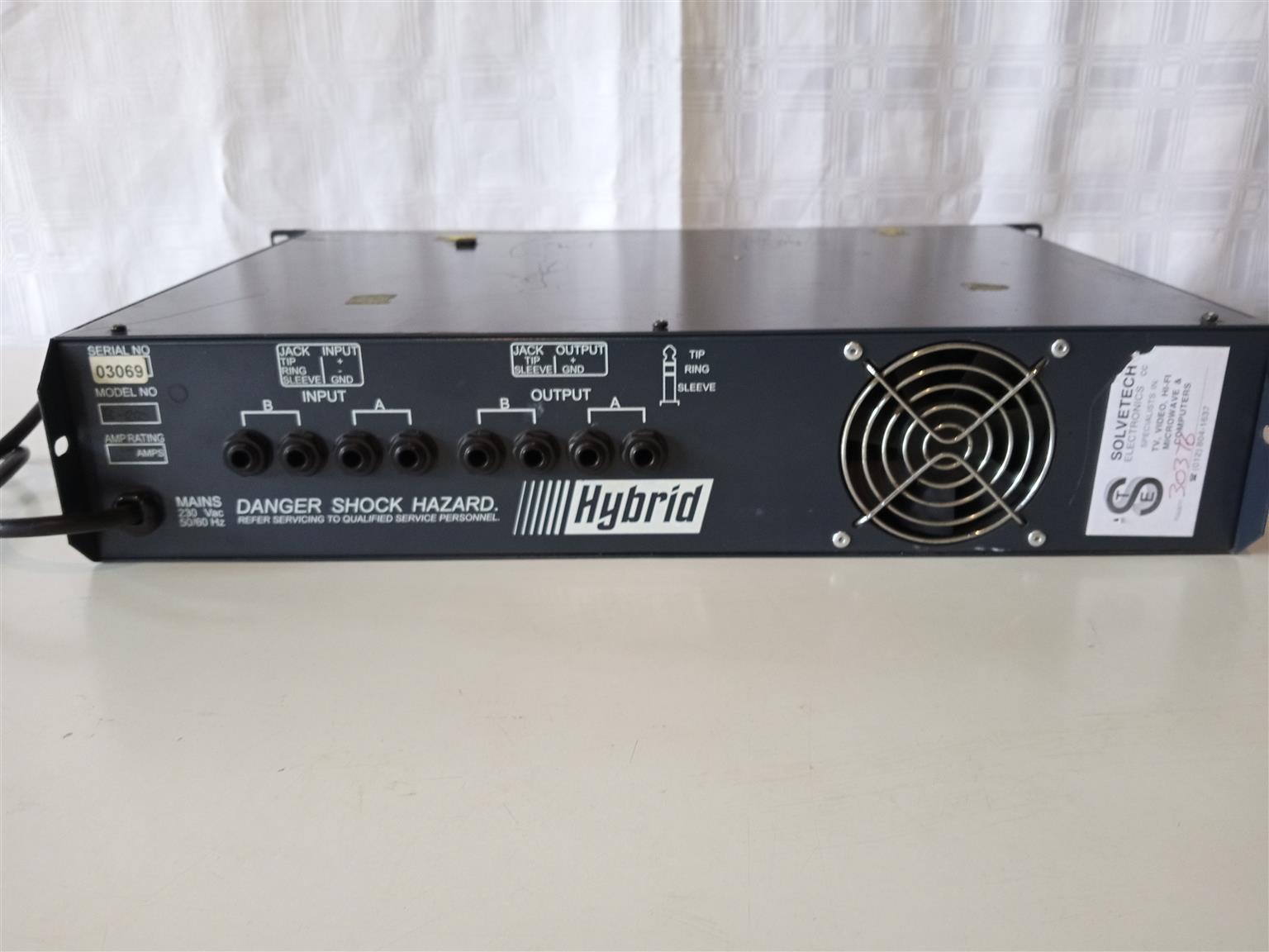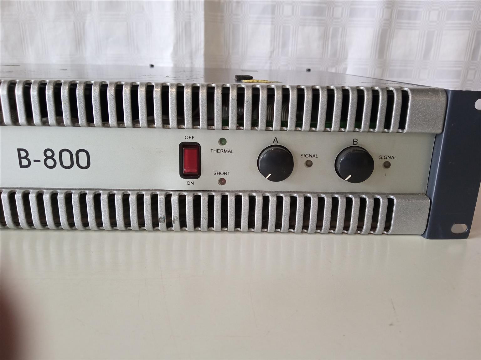 Hybrid Power Amplifier B800. 2-channel power amplifier, parallel or bridged mono operating modes for flexible application 200 Watts @ 8 Ohm. Speaker outputs on easy to plug in jack connectors. Applications: live sound, church,