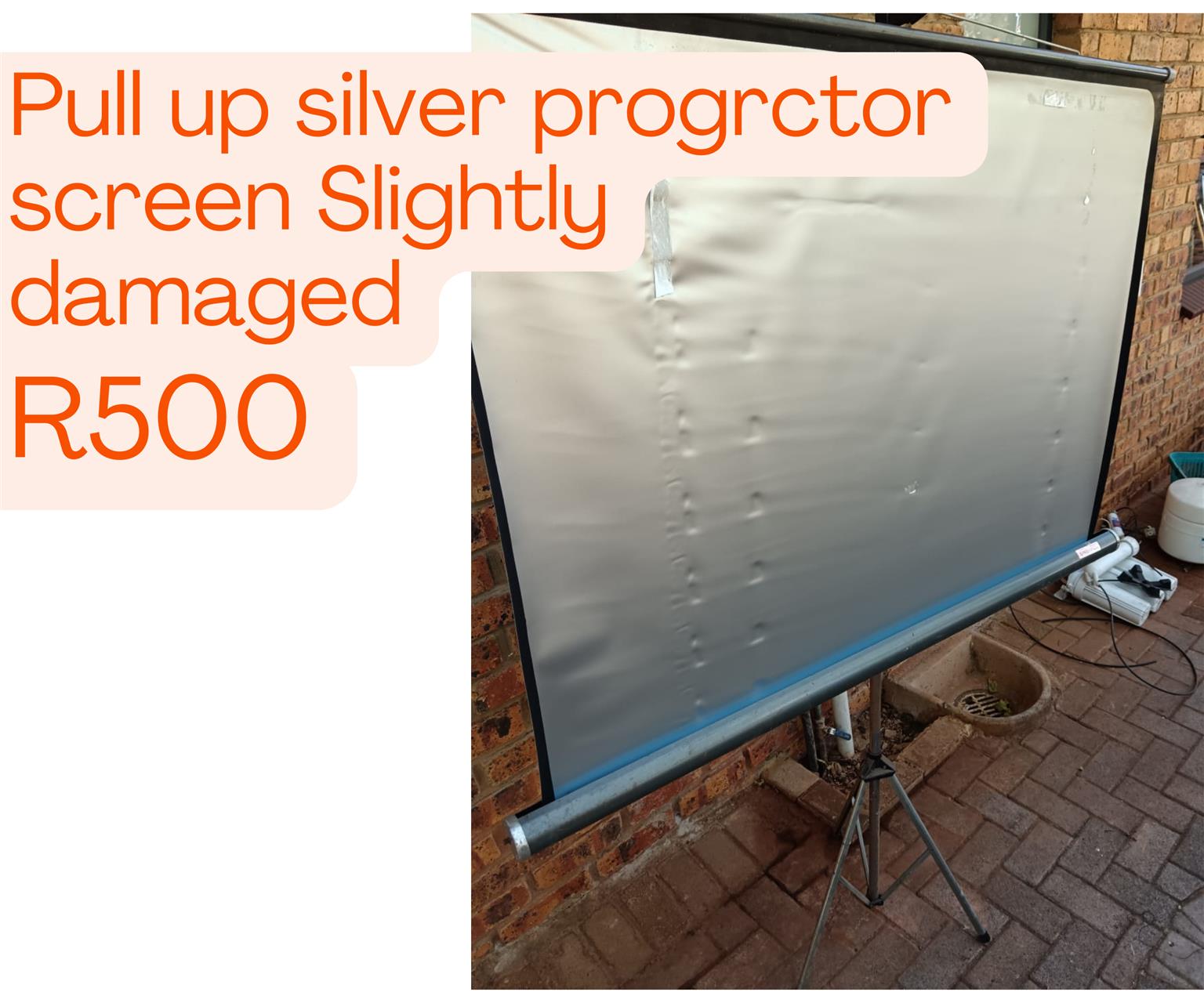 Old School Pull up projector screen mirror tape used on the screen but with some patience it will come off, +/-1 meter squared.