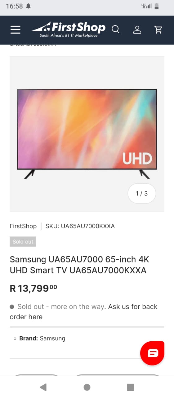 Samsung UHD Smart TV 65". More details:Intention - For SalePrice - 9500.0Region - GautengCity - PretoriaSuburb - Pretoria East