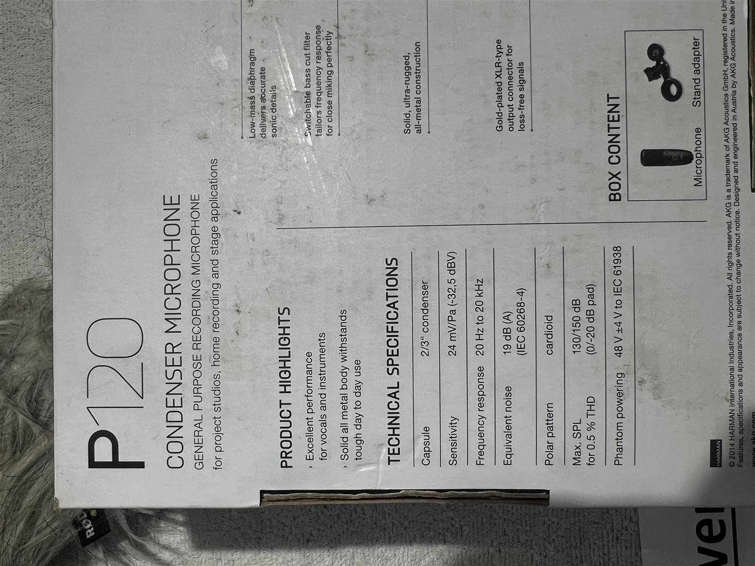 AKG Condenser Microphone P120 for sale R1799.00. In a good and working condition backed by a six month guarantee. Black in colour. Reference : CAMNT028500