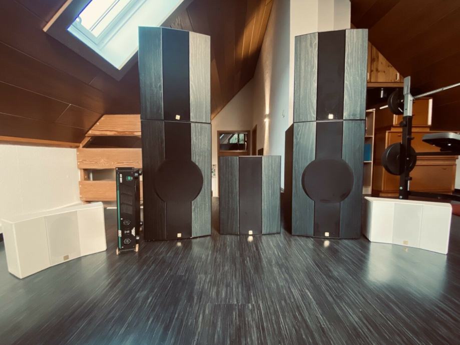 Consisting out of 3 identical LCR units, 2 x 12 inch passive bass bins and two surround units.