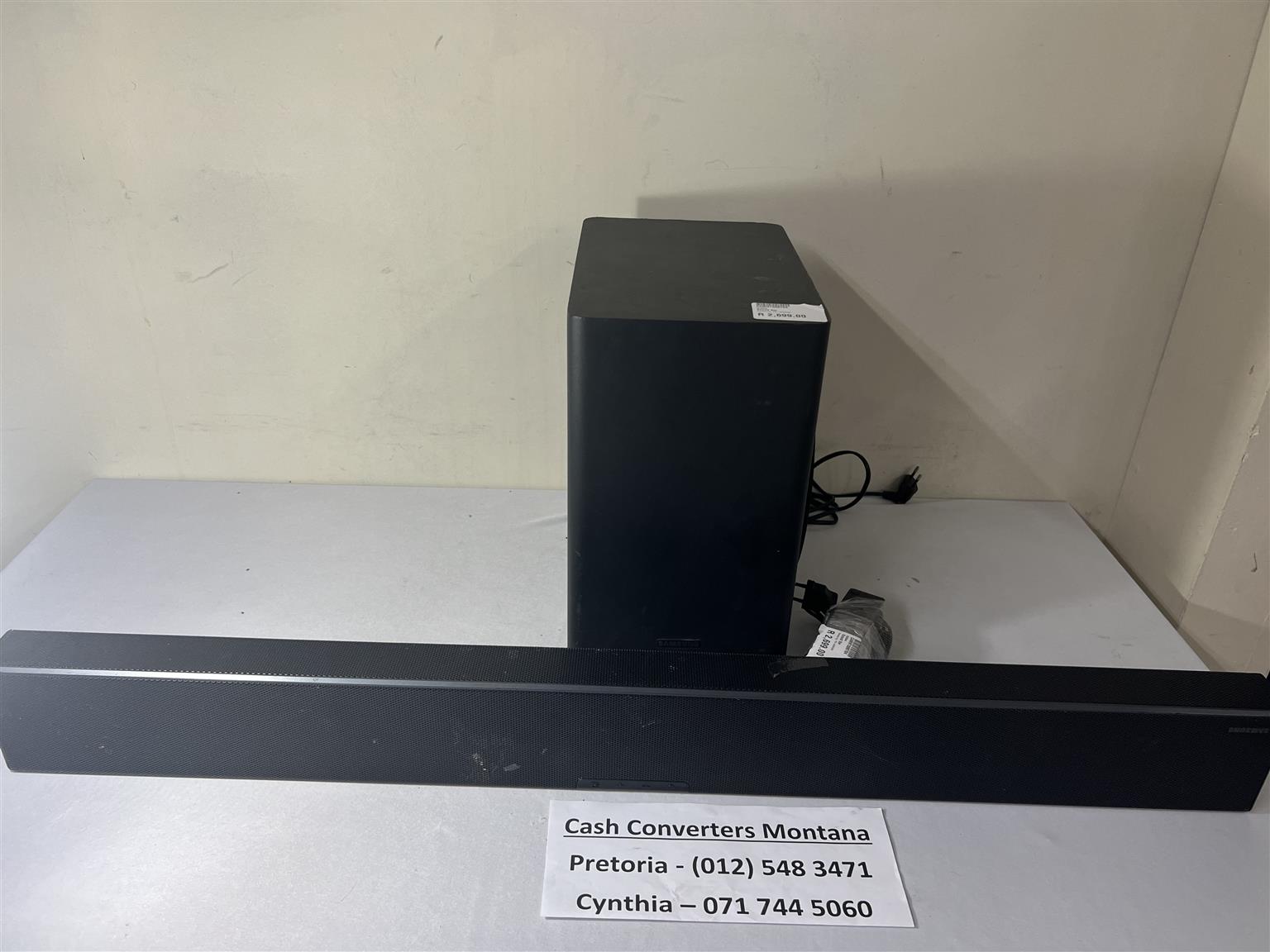 Samsung Soundbar and Woofer HW-Q60T for sale R2699.00. In a good and working condition backed by a six month guarantee. Remote included. Black in colour. Reference : CAMNT008704