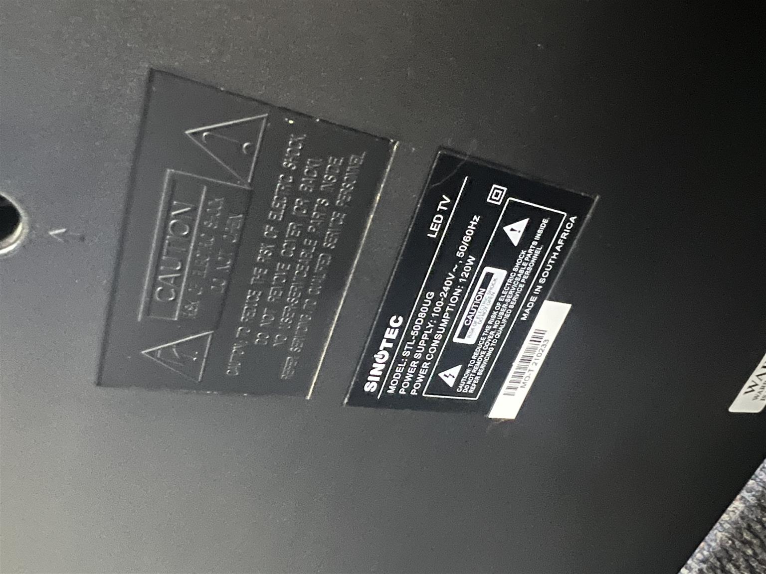 Sinotec LED TV STL-50D80UG for sale R3499.00. In a good and working condition backed by a six month guarantee. Valid TV license required. Black in colour. Reference : CAMNT010948