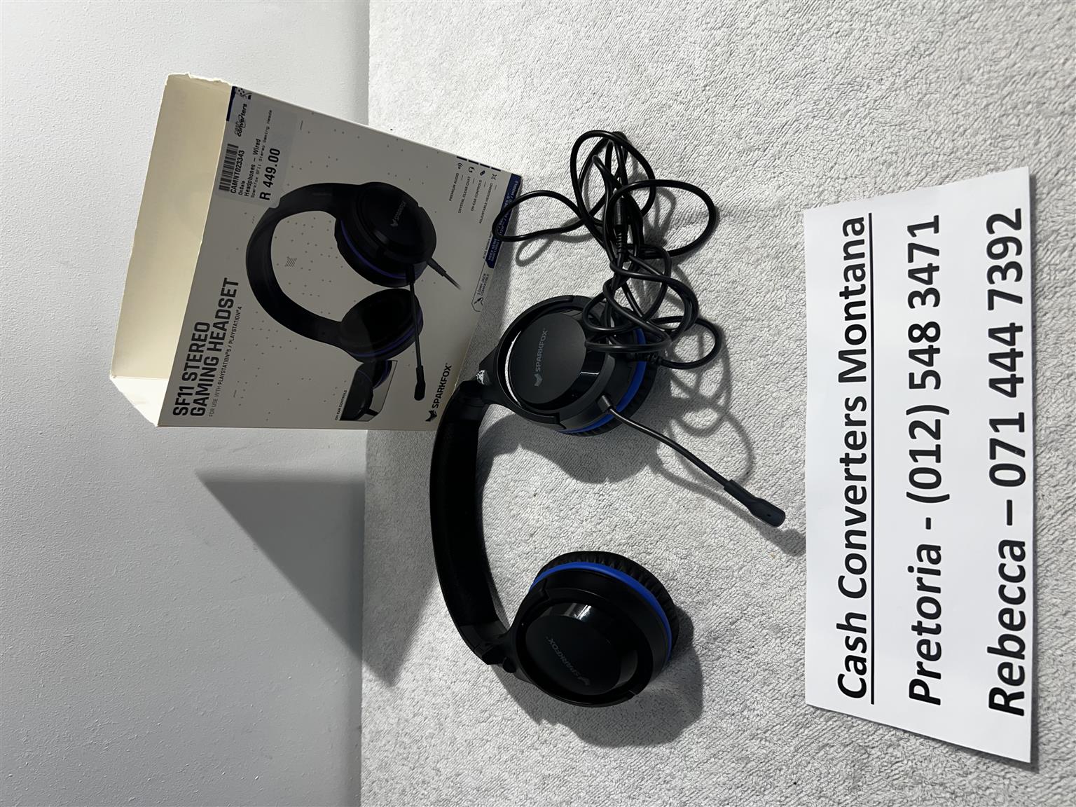 Sparkfox SF11 Stereo Gaming Headset for sale R449.00. In a good and working condition backed by a six month guarantee. For PS4 / 5. Blue and black in colour. Reference : CAMNT023343