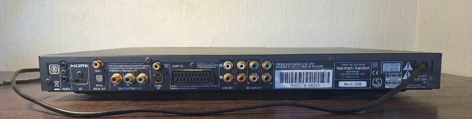 High end DVD player. Digital coax out, scart out, digital fibre out, hdmi out, component out, Individual channel RCA out. Gold plated terminals. Has a slightly lazy tray. Price already takes that into account. Larger / deeper size No remote.