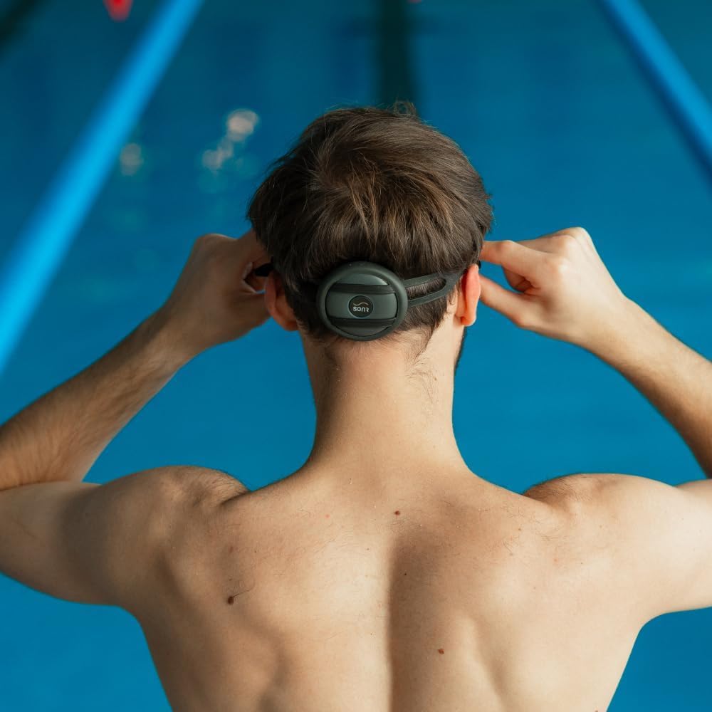 Our open-ear design powered by bone conduction technology ensures bud-free, comfortable listening all day, in or out of the water.