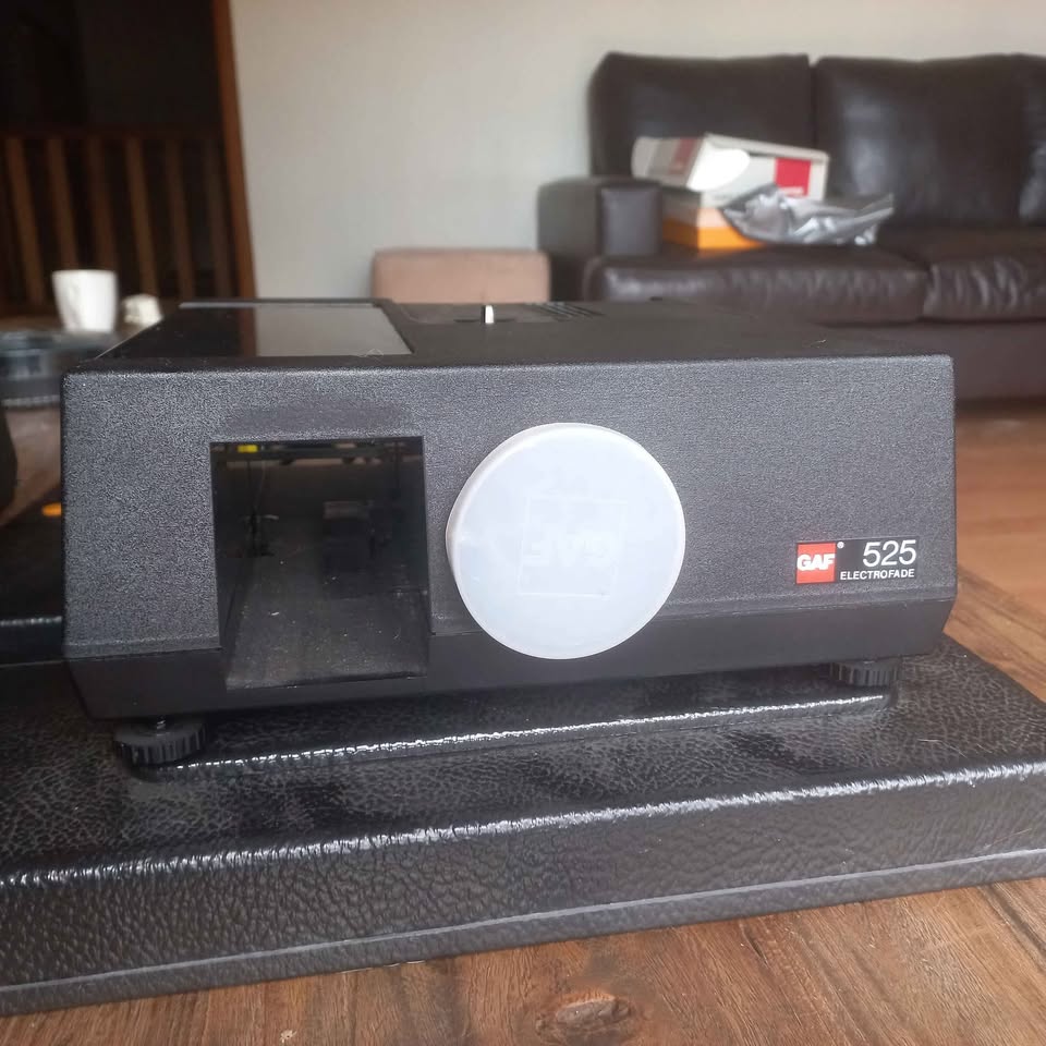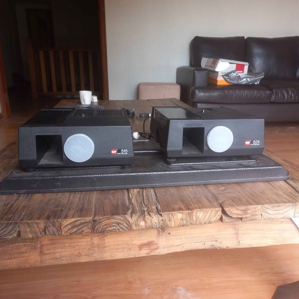 Excellent condition GAF slide projectors with base. One is a 515 and one is a 525. With remotes. NO SLIDE TRAYS. Price very negotiable. Urgent relocation sale.