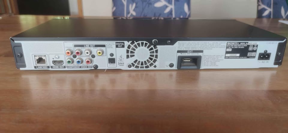 Sony Blue ray player with attractive design. Front flips down to receive discs. Plays CDs and DVDs too. LAN connection. HDMI output, optical fibre out. Sorry no remote. Works perfectly.
