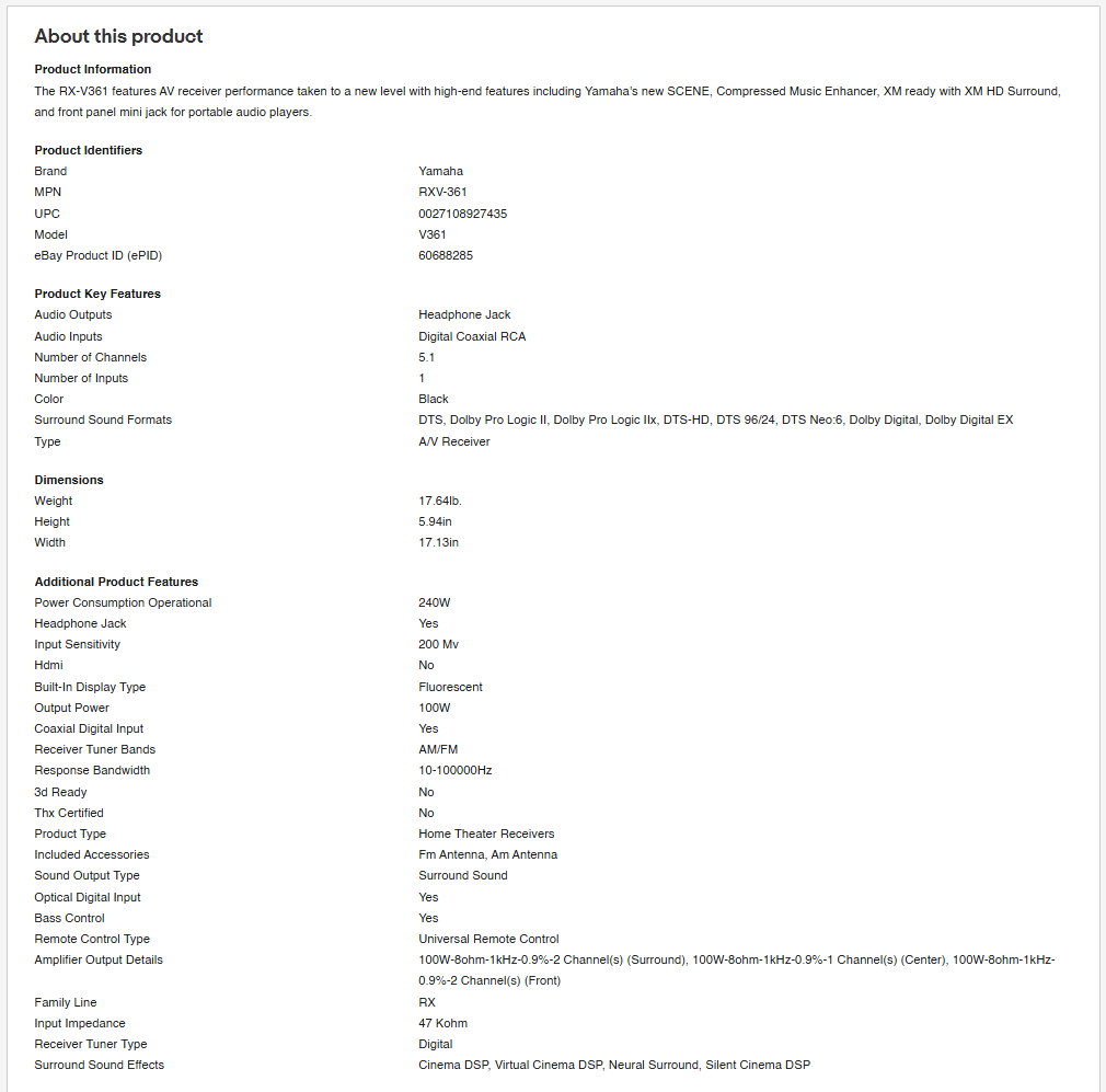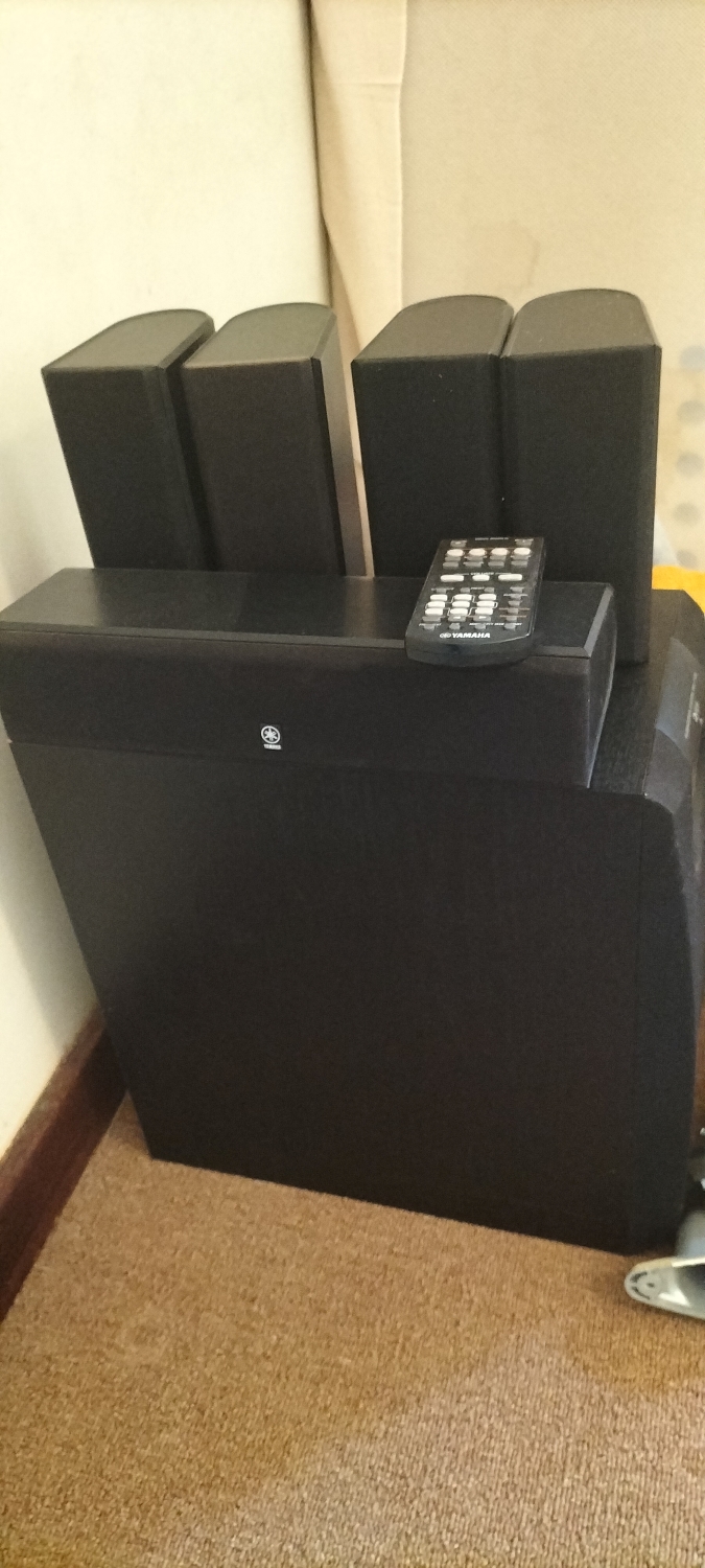Includes amplifier, 4 speaks, sub woofer and brackets.