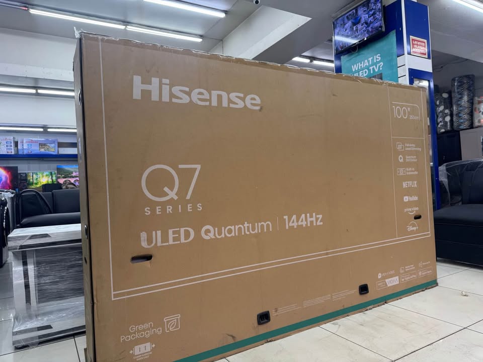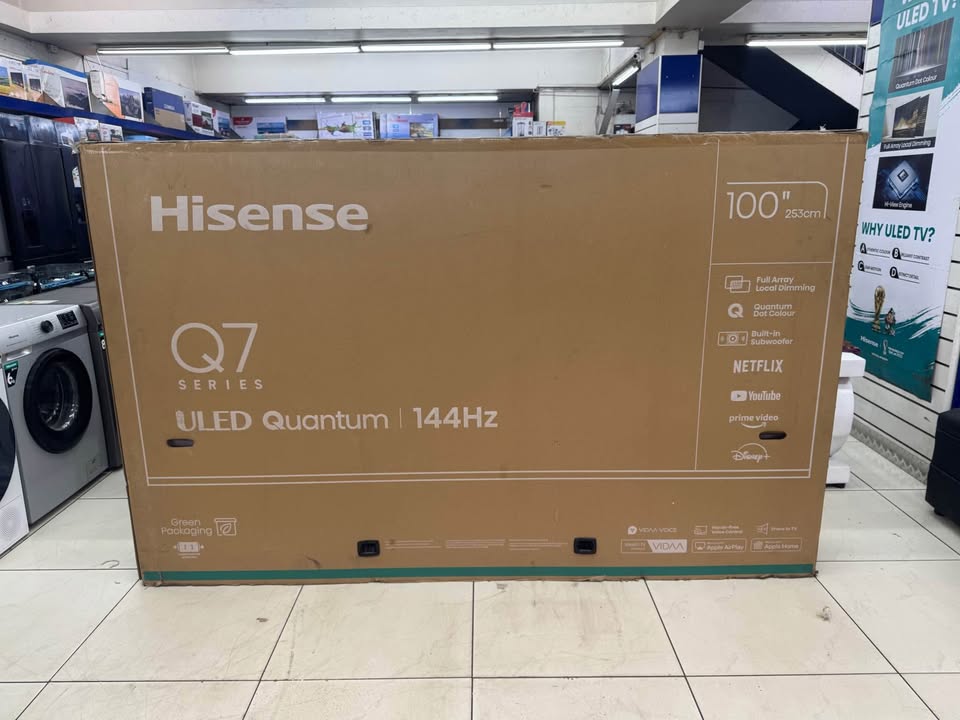✅ 100” Ultra-Large Display (253 cm) ✅ ULED Quantum Technology – vibrant colors & crystal-clear details ✅ 144Hz Refresh Rate – smooth for gaming & fast action scenes ✅ Full Array Local Dimming – deeper blacks & enhanced contrast ✅ Built-in Subwoofer – powerful sound without extra speakers ✅ Smart TV with VIDAA OS – Netflix, YouTube, Prime Video, Disney+ & more ✅ Supports Apple AirPlay & Apple Home ✅ Hands-Free Voice Control