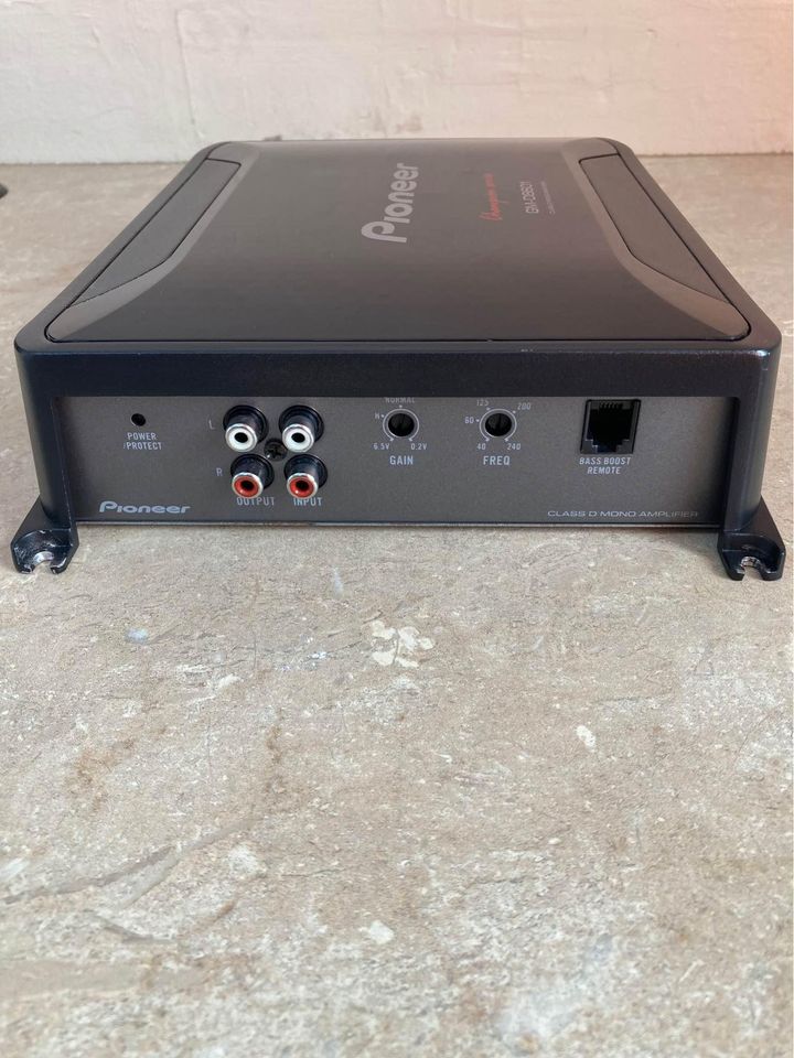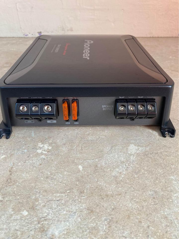 Basically brand new - Pioneer champion series Monoblock in excellent condition.Very powerful high end amplifier. 1600w. 1ohm stable.Bass is super clean and detailed.Amp does over 1000 w rms @ 1 ohm. 4 gauge power and ground terminals.Amp will easily run 1,2 or 4 woofers.