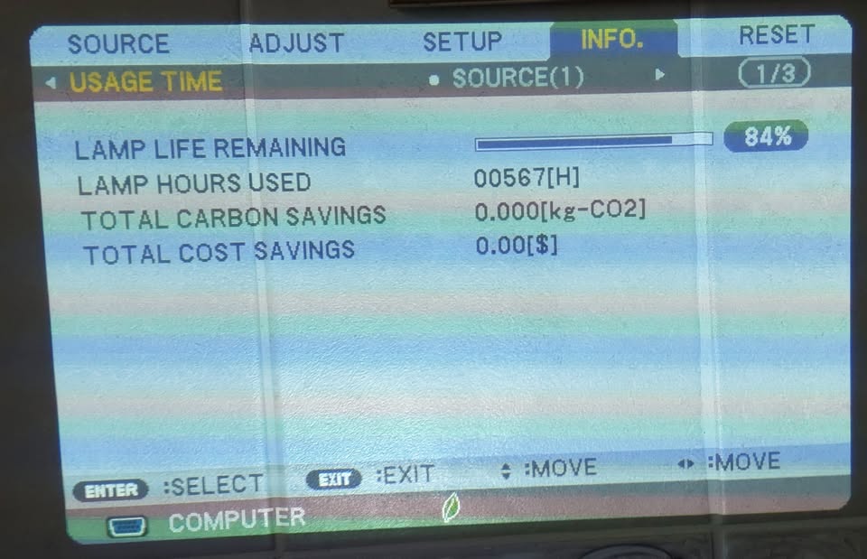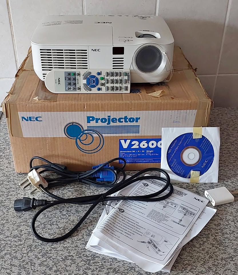 Near pristene condition with original box and remote . Everything perfect working order , ANY TEST WELCOME. LAMP LIFE USABLE : 4400 HOURS LEFT IN ECCO MODE 2400 HOURS LEFT IN FULL BRIGHTNESS Brightness 2,600 Lumens (ANSI)1 Resolution 800x600 Aspect Ratio 4:3 (SVGA) Contrast 2,000:1 (full on/off) Display Type 1 cm DLP x 1 Color Wheel 6 segments Color Processing 8-bit Video Modes 720p, 1080i, 576i, 576p, 480p, 480i Data Modes MAX 1600x1200 3D Modes PC 3D Ready [Glasses Type: Shutter Lamp Type 180W AC bulb Lamp Life 3,500 hours / 5,000 hours (Eco)