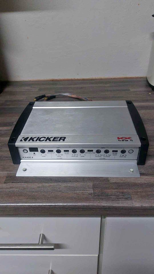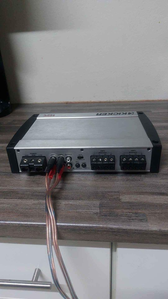 Kicker 400.4 amp hardly used. It is in perfect working condition and has multiple purposes. Retail price of Amp is usually R4000. Comes with Specifications and box.