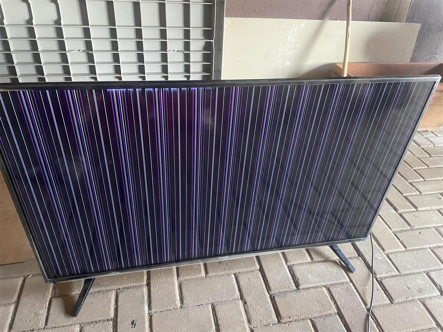 1. Samsung 55 inch smart TV. Screen damaged. Lines displayed when switched on.