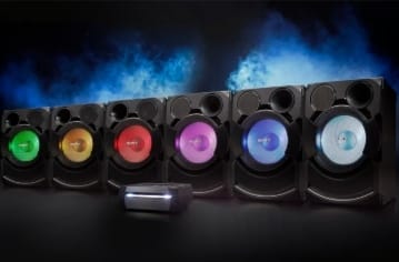 Pump up the atmosphere with club-like LED speaker illumination. The LED light speakers come with various colour patterns, ranging from pure white to rainbow.
