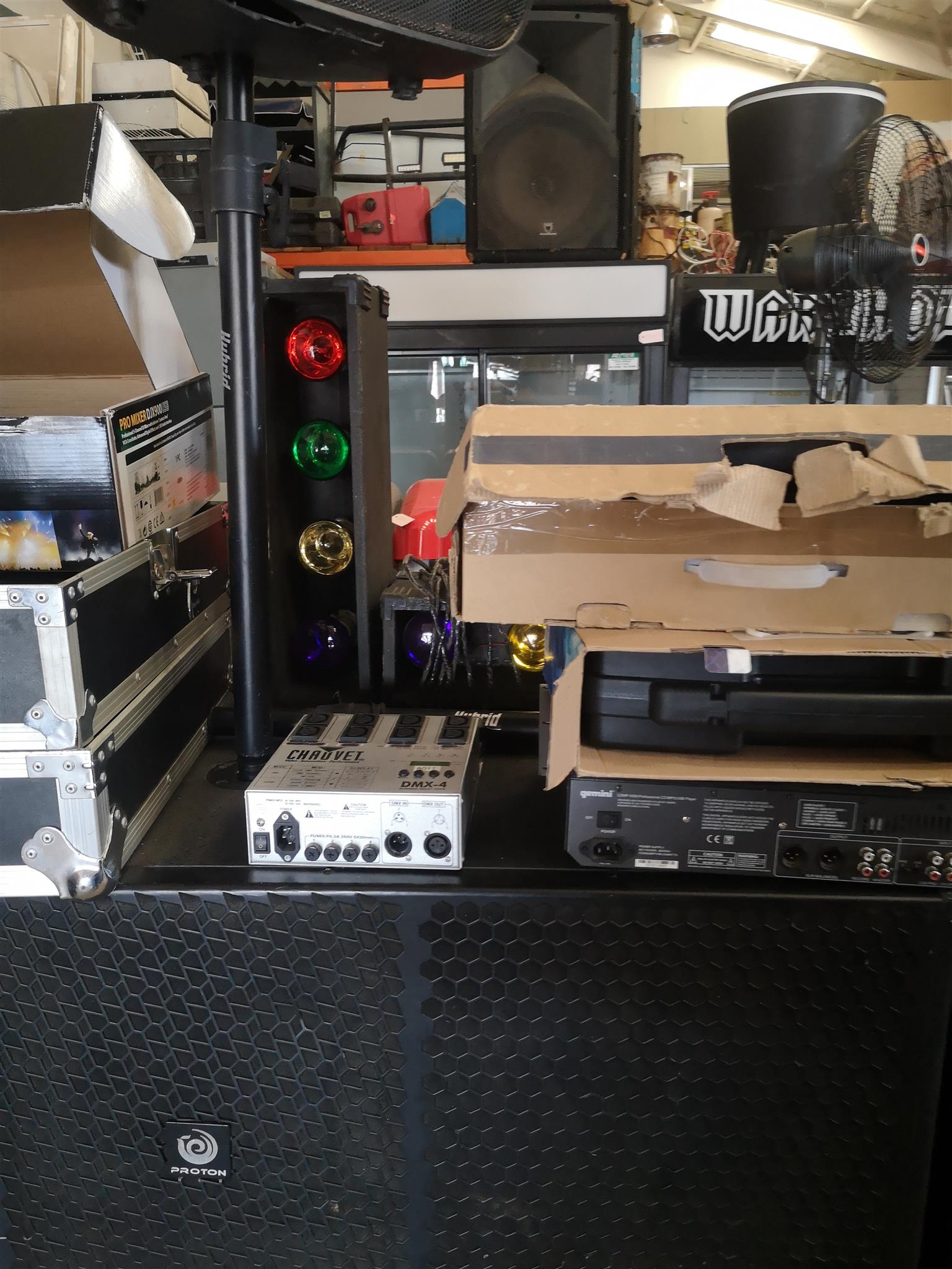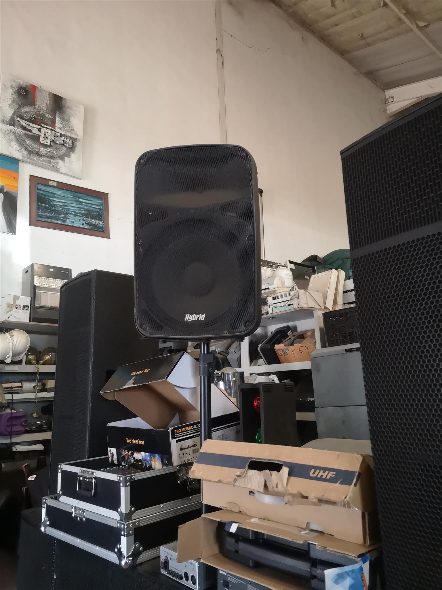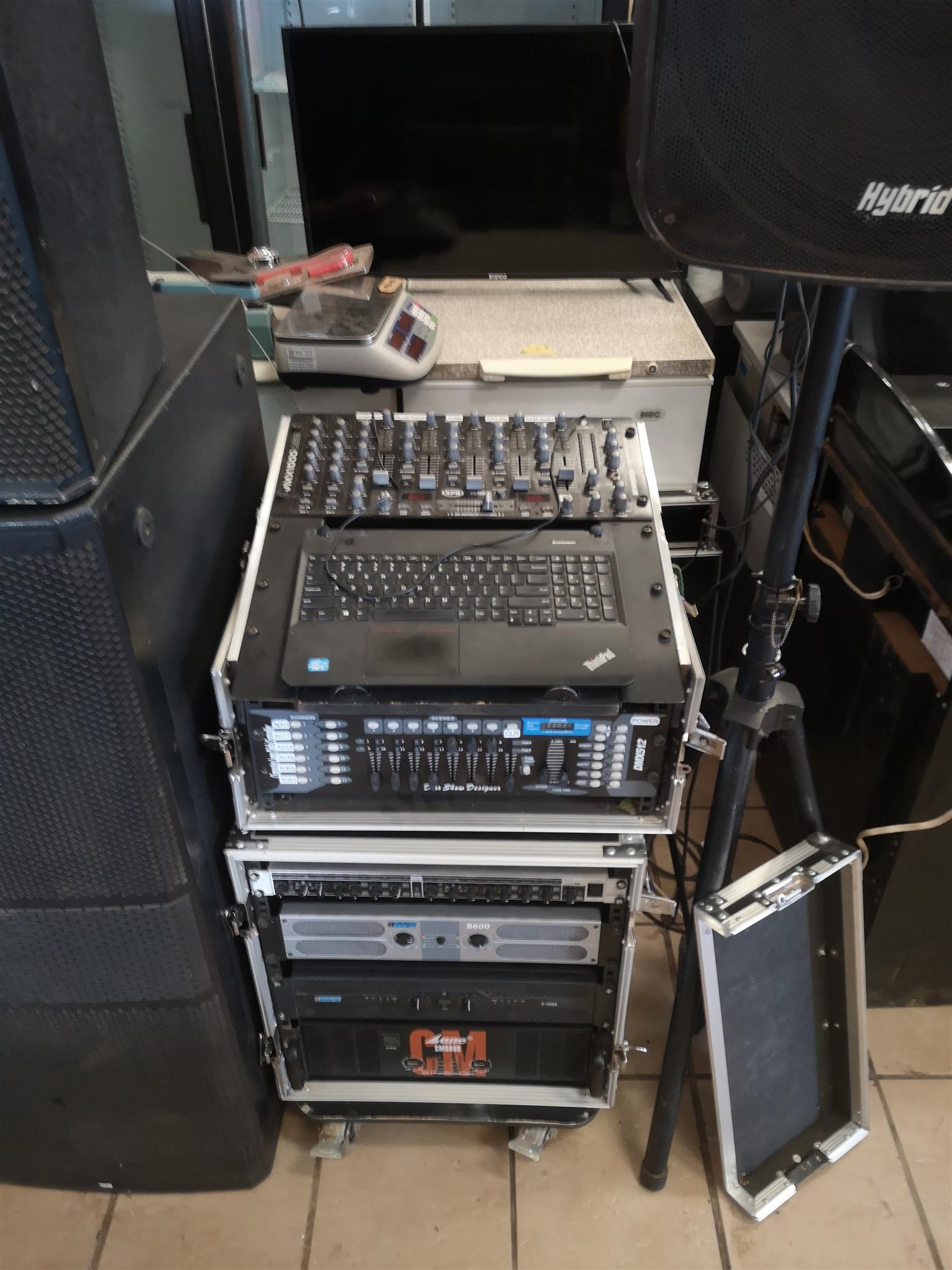 A bunch of Hybrid+ Speakers, Behringer mixers, Disco lights, UHF dual mic system, Bass bins, Gemini Professional player and so much more!