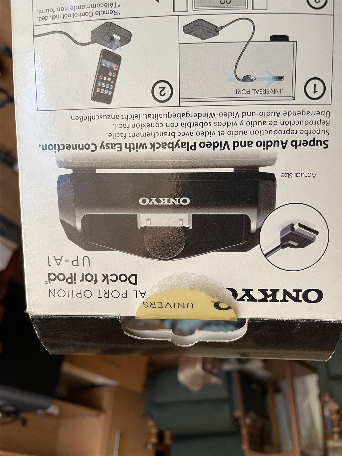 Onkyo UP-A1. iPod and iPhone connection. Audio and video playback with easy connection. Works only with Onkyo products with universal port. 30 pin connector.