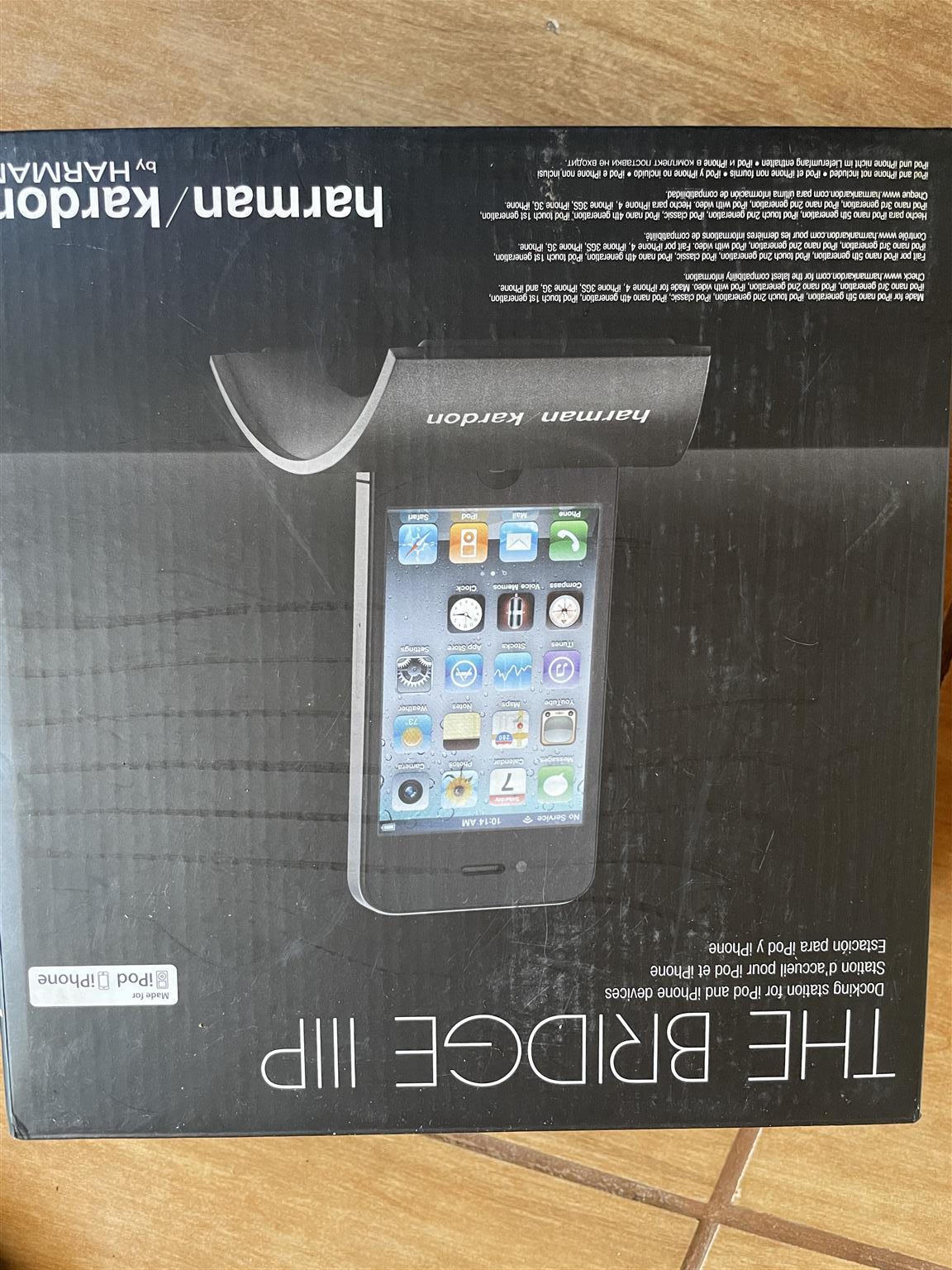 Harman Kardon The Bridge IIIP. Require Harman Kardon product that supports video for video playback. Includes custom adapters for iPhone4, iPhone 3GS, iPhone 3G, iPod Touch 2nd Gen, iPhone and iPod Touch 1st Gen.