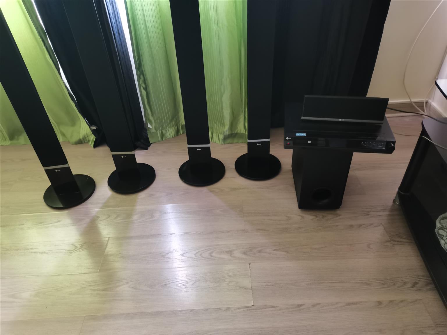 Sub woofer dvd player USB input blootooth en ale two small speakers remote control