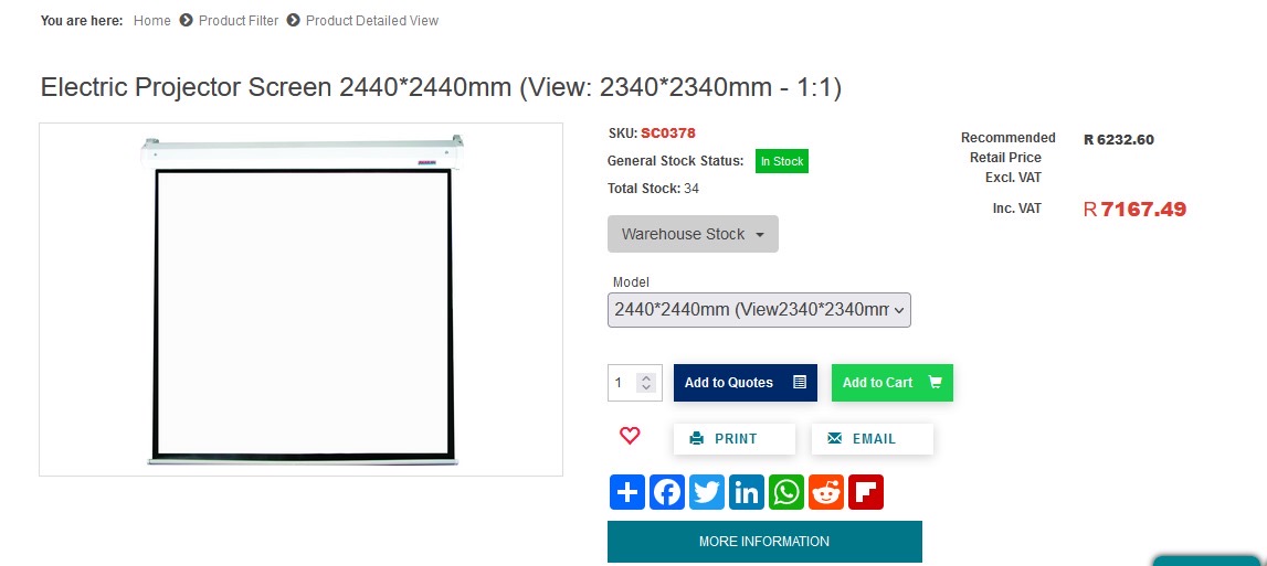 Parrot Electric Projector Screen plus.Projector & Bracket. Like watching cinema movies at home. Also good quality picture during daytimeR3800