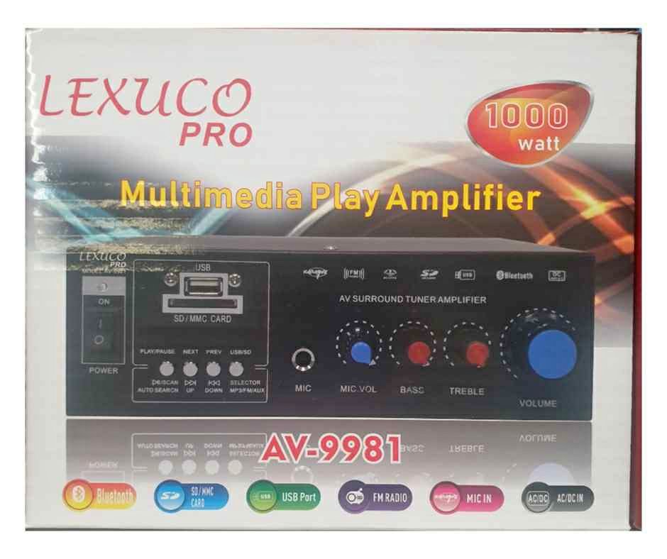 Lexuco mini Bluetooth home Amplifier that takes 2 speakers up to 12inch. Bluetooth, USB,SD, rca and fm radio New sealed in the box with 1 year warranty and FREE DELIVERY, COD