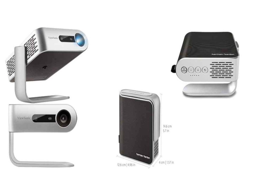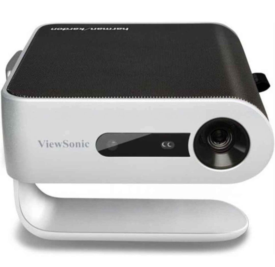 Product Overview The ViewSonic M1+G2 is an iF award-winning, ultra-portable LED projector that can deliver a convenient, enjoyable entertainment experience anywhere it goes. With a built-in battery, a LED light source with up to 30,000 hours of lifespan, all packaged into less than 1 kg, the M1+G2 can deliver years of multimedia entertainment wherever it goes – from room to room, both inside and outdoors. Its smart stand enables simple 360-degree setup, while doubling as a lens cover. Once the lens is uncovered, the projector automatically powers on to full brightness for instant entertainment. Stereo Harman Kardon speakers provide room-filling sound for an amplified experience, while more flexible audio needs can be realized via Bluetooth. Integrated Wi-Fi connectivity makes streaming easier than ever – both wireless casting from smart devices and built-in content streaming are poss Highlights • Smart Wi-Fi & Bluetooth connectivity • 360° Smart stand that allows for ceiling projection • Integrated stereo Harman Kardon speakers • Cinema SuperColor+™ Technology with 125% Rec.709 • Advanced LED light source with a 30,000-hour lifespan • Up to 6 hours of battery life Specifications • Stock Code:M1 _G2 • Description:Viewsonic M1 _G2 Smart LED Portable Projector - 300 LED Lumens • Lamp Watt: RGB LED • Lens: F=1.7, f=5.5mm • Projection Offset: 100% /-5% • Throw Ratio: 1.2 • Optical Zoom: Fixed • Image Size: 24"-100" • Throw Distance: 0.64m-2.66m, (38"@1m) • Keystone: /- 40° (V) • Audible Noise (Normal): 26dB • Audible Noise (Eco): 25dB • Local Storage: Total 16GB , (12GB available storage) • Input Lag: 41.5ms • Resolution Support: VGA(640 x 480) to FullHD(1920 x 1080) • HDTV Compatibility: 480i, 480p, 576i, 576p, 720p, 1080i, 1080p • Horizontal Frequency: 15K-102KHz • Vertical Scan Rate: 23-120Hz • HDMI: 1, (HDMI 1.4/ HDCP 1.4) • USB Type C: 1 (5V/ 2A) • Audio-in (Bluetooth): 1 (BT4.2) • USB Type A: 1, (USB2.0 Reader) • SD Card: Micro SD (32GB, SDHC) • Wifi Input: 1 (5Gn) • Audio out (3.5mm): 1 • Audio-out (Bluetooth): 1 (BT4.2) • Speaker: 3W Cube x2 • USB Type A (Power): 1 , (USB2.0 - 5V/1A,, share with USB A Input) 12 months warranty - 3 months on Bulb What's in the box 1 x Viewsonic Projector