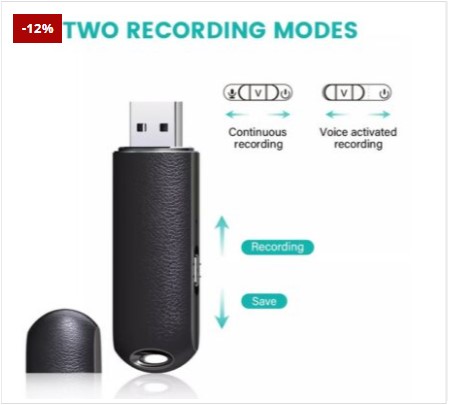 Voice activated: records when a sound or noise or voices are detected, up to 96 hours recording