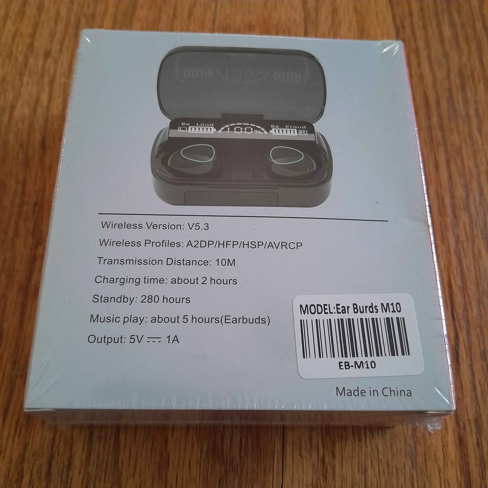 Grab these awesome M10 True Wireless Headsets! They offer great sound quality and a sleek, compact design for music and calls on the go. Perfect for gym sessions, commuting, or just chilling. 😎 Key Features: > NEWEST V5.3 BT Wireless for a stable connection 📶 > Digital Indicator display on the charging case shows battery percentage (case and individual earbuds) > Touch Version controls 👆 > True Wireless Stereo > Fast Charging ⚡ > Long Standby: Up to 280 hours! > Music Play Time: About 5 hours (earbuds) These are ultra-small and deliver a fantastic sound experience! Country Of Origin: Made in China 🇨🇳 📨 Message me for availability. 📍 Pickup: Goodwood, Cape Town 📦 Courier: PUDO locker-to-locker service nationwide.