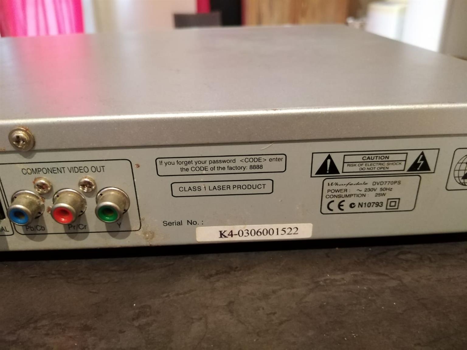 Wharfdale dvd player 100 percent working condition available has surround sound and mp3 in exellent condition 100 percent working condition.