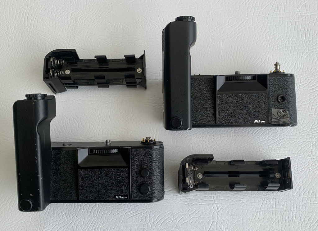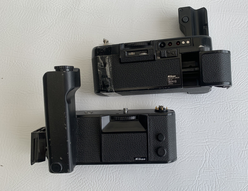 Motordrive MD4 for Nikon F3 with the Nikon Instruction Manual. The MD4 powers both camera and the drive, it advances film in Single or Continuous Mode (up to 8 frames per second). Good condition with minor wear marks and a second, non-working MD4 with its 8-cell battery cartridge is included for spares. Price excludes Postage/Courier - BUYER TO PAY COURIER CHARGE