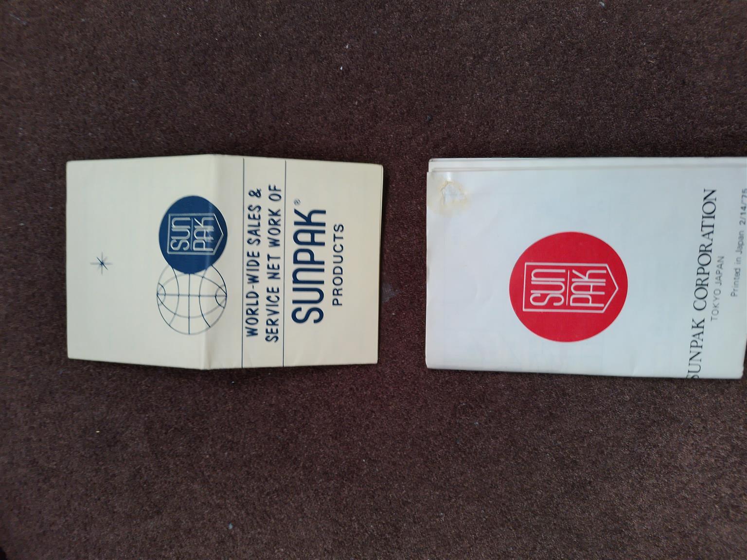 Sunpak auto 14 electronic camera flash unit (light). Fits most SLR cameras, with user manual, in original box. Excellent condition.
