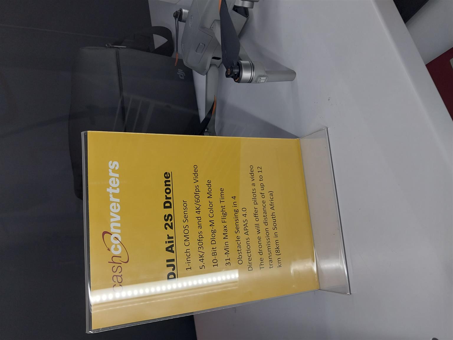 Drone dji air 2s 5.4k/30fps and 4k/60fps video.10bit dlog-m colour mode.31-min max flight time.distance up to 12km(8km in south africa