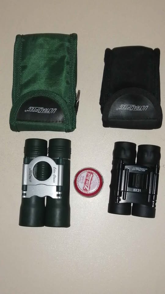 Lads, need a device to see when SWAMBO is near? Ladies, you need this to spot a good deal. Well, R450 gets you both. That's like 1 each, right? 2 sets of UltraOptec binoculars. Used once, for like 3 minutes. Folds to compact size. Includes soft canvas carry pouch. Big: 10×25 Small: 8×21 Ideal for camping, cyclists, outdoorsey types, those with 4" television but 10m lounge. ⚠️ Not for nerfarious activities. Cash only. Fairly negotiable. No swaps. 🛑 No warranty, no returns. Clearing out storage, check and follow my Marketplace profile for other listings, many items to be posted. 🛑🛑 I don't respond to "is it still available?" No holding / reserving. ➡️ Kindly ensure that you have read and understand the advert. ⚠️ Collection only, Primrose East, Germiston. No courier option. ⚠️ All chats inbox only, to keep track of the transactions.