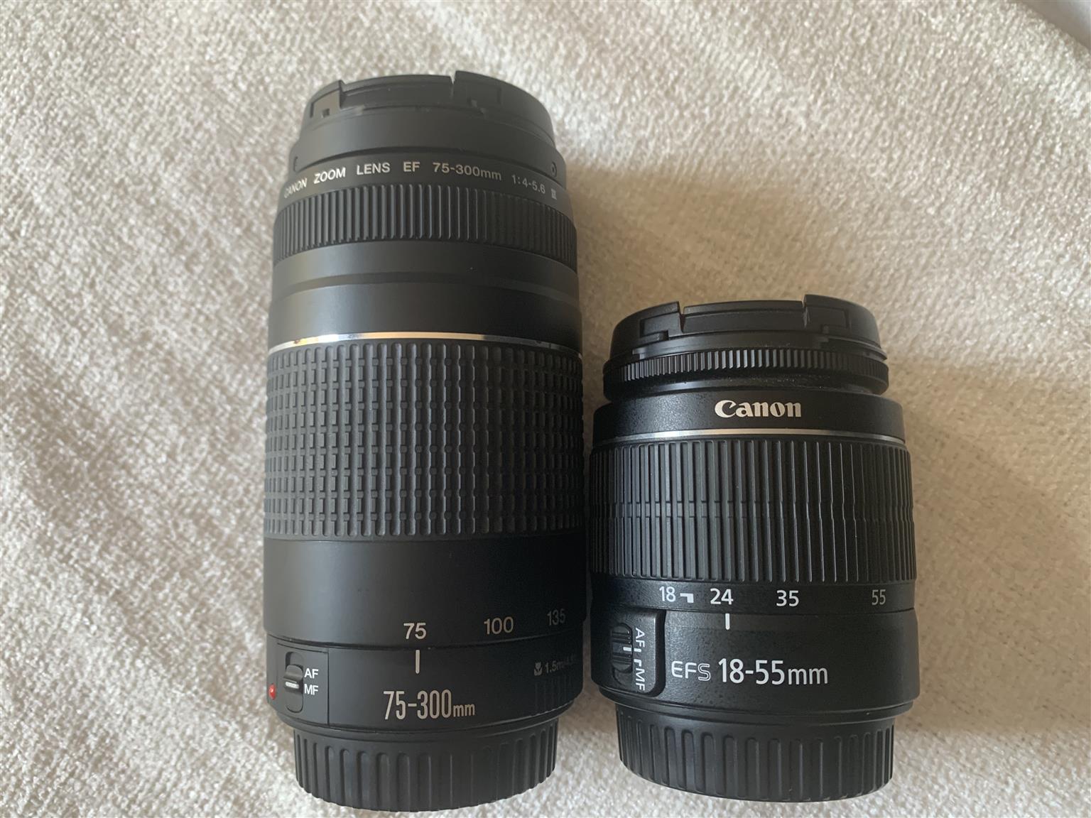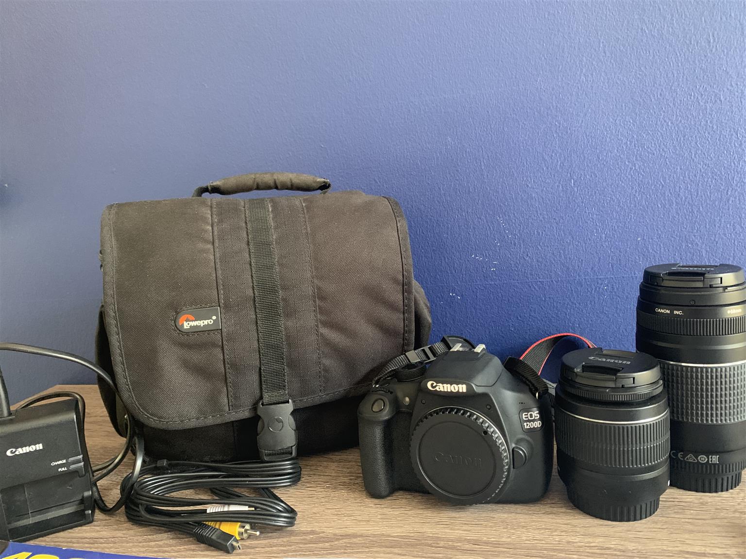 Canon dslr 1200D18-55mm lens75-300mm lensBagStrapChargerDiscsAv cable