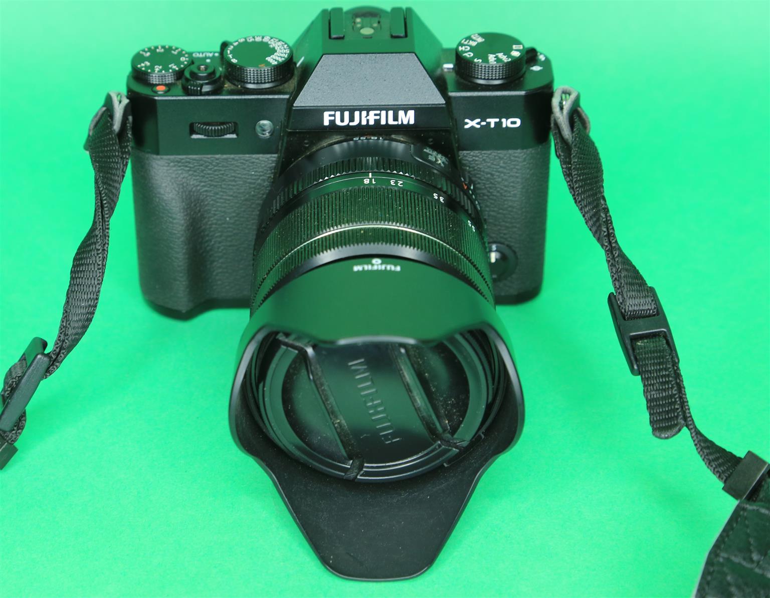 FujiFilm X-T10 complete with Fuji XF18mm-55mm zoom lens included battery charger strap and lens cap and hood