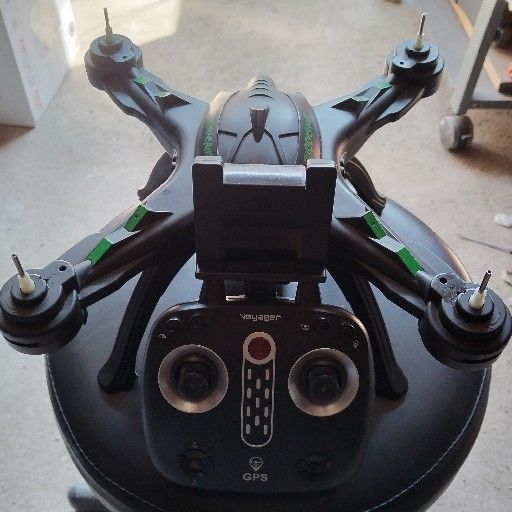 Hurricane GPS Camera Drone. Propellers, Landing Gear, Remote with Phone holder included. No battery.
