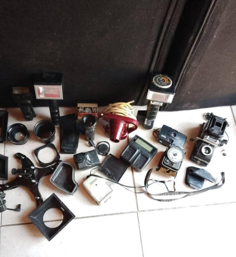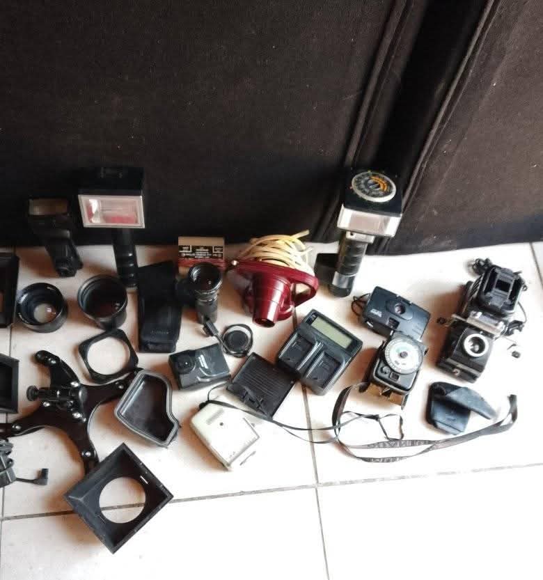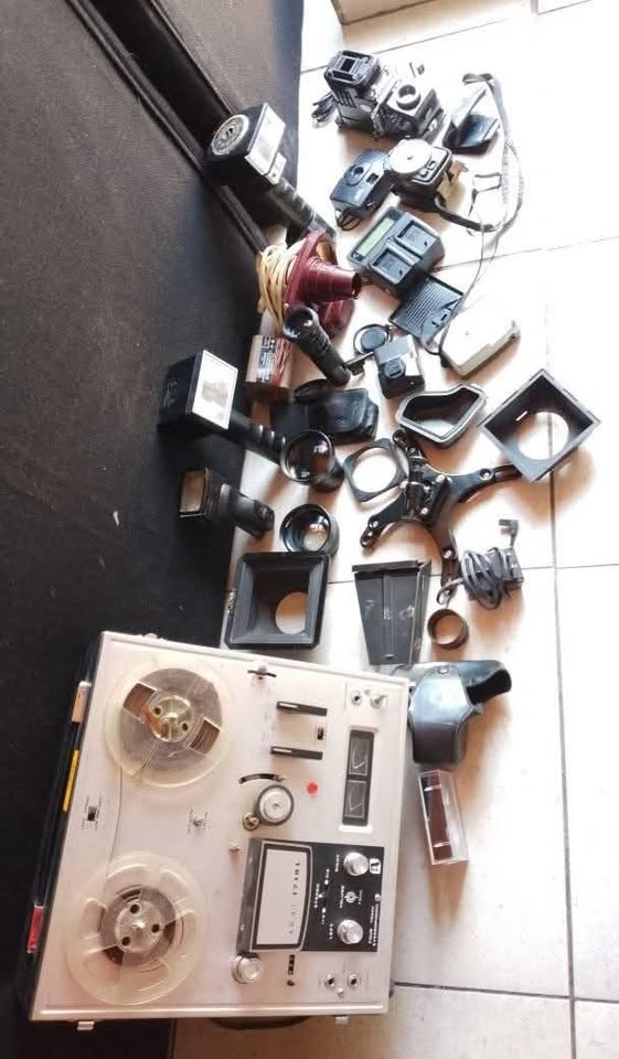 Assorted camera spares for sale includes : Different size lenses, pouches, tape recorder etc selling it all for R350