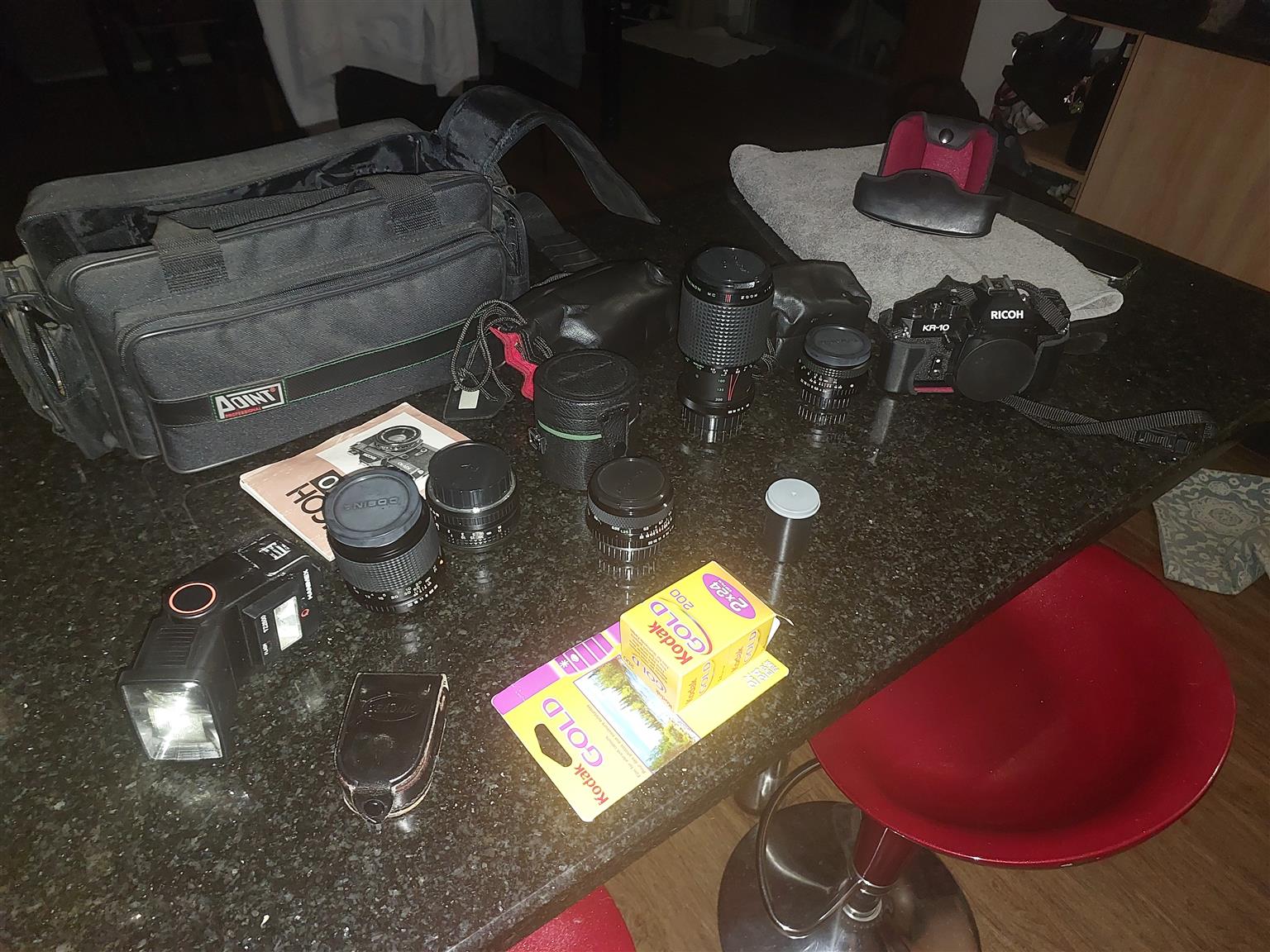 Vintage Ricoh Camera Set with extra lenses and bag
