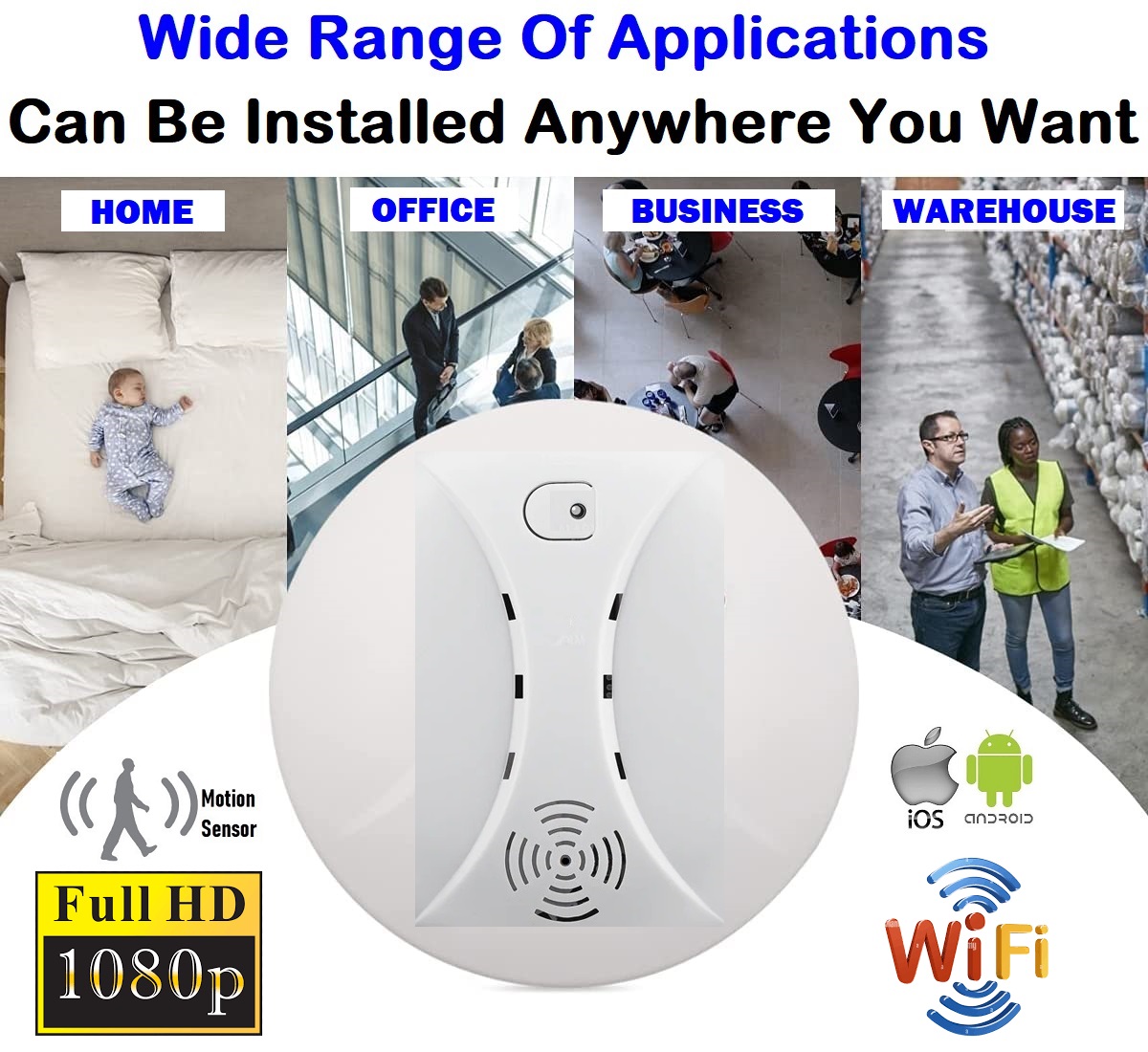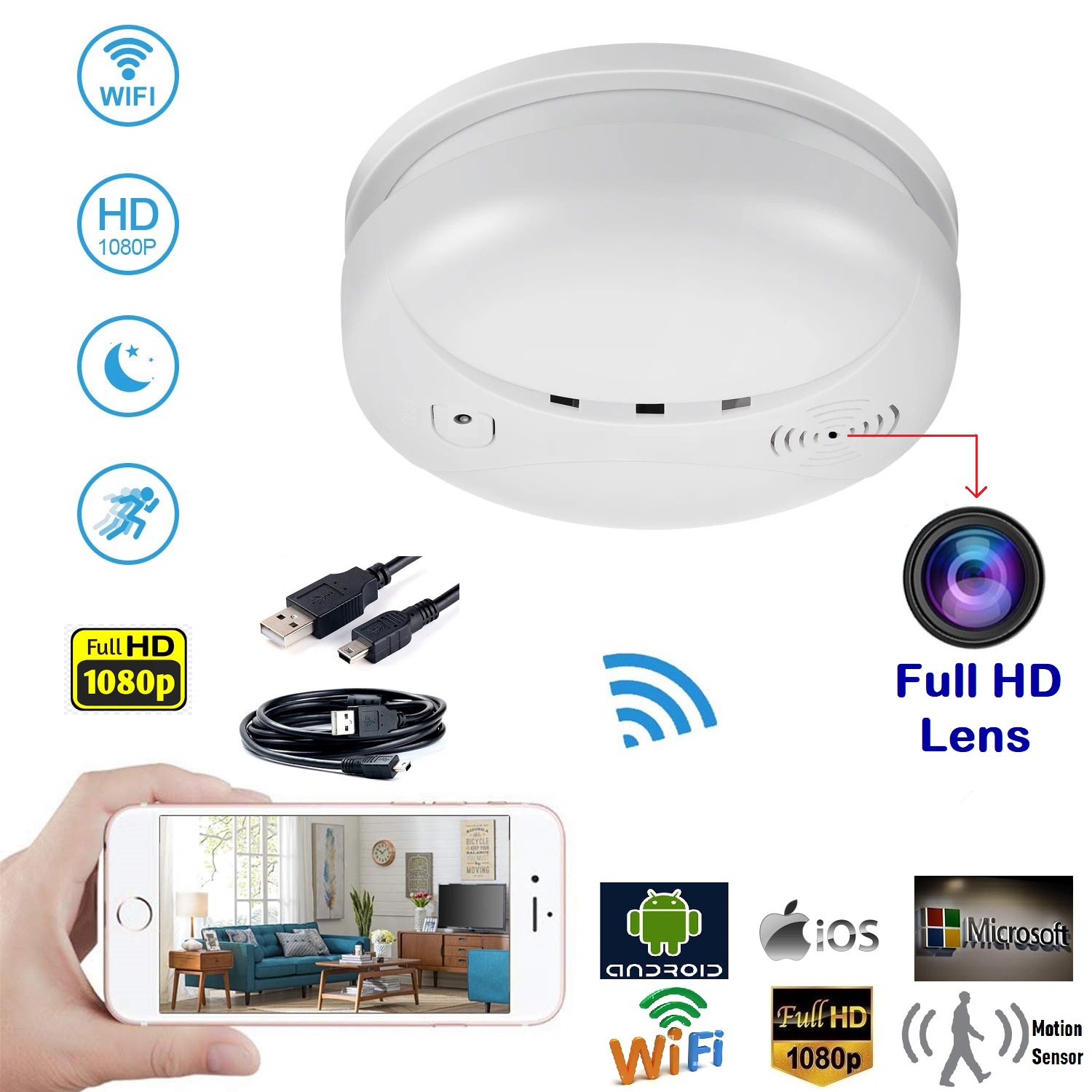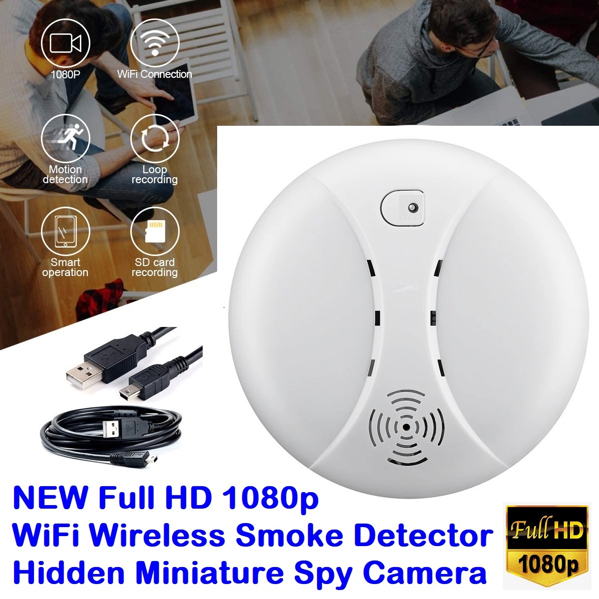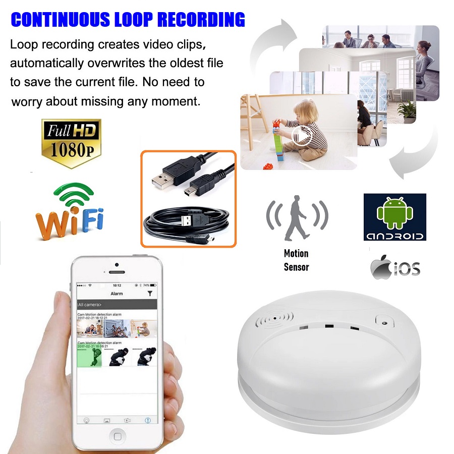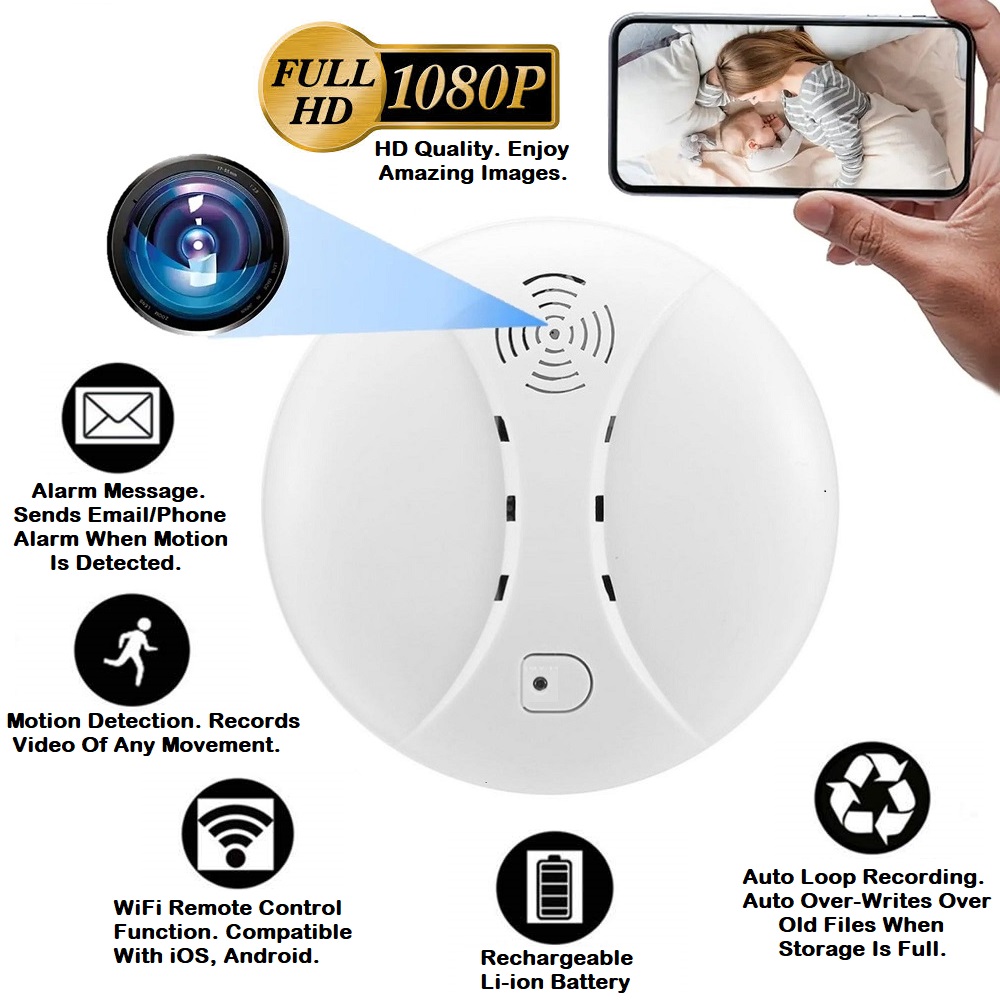 UNIQUE DESIGN: Disguised as a smoke detector (without real smoke detector function). Has a built-in Full HD hidden camera. Nobody will realize this is a hidden spy camera.