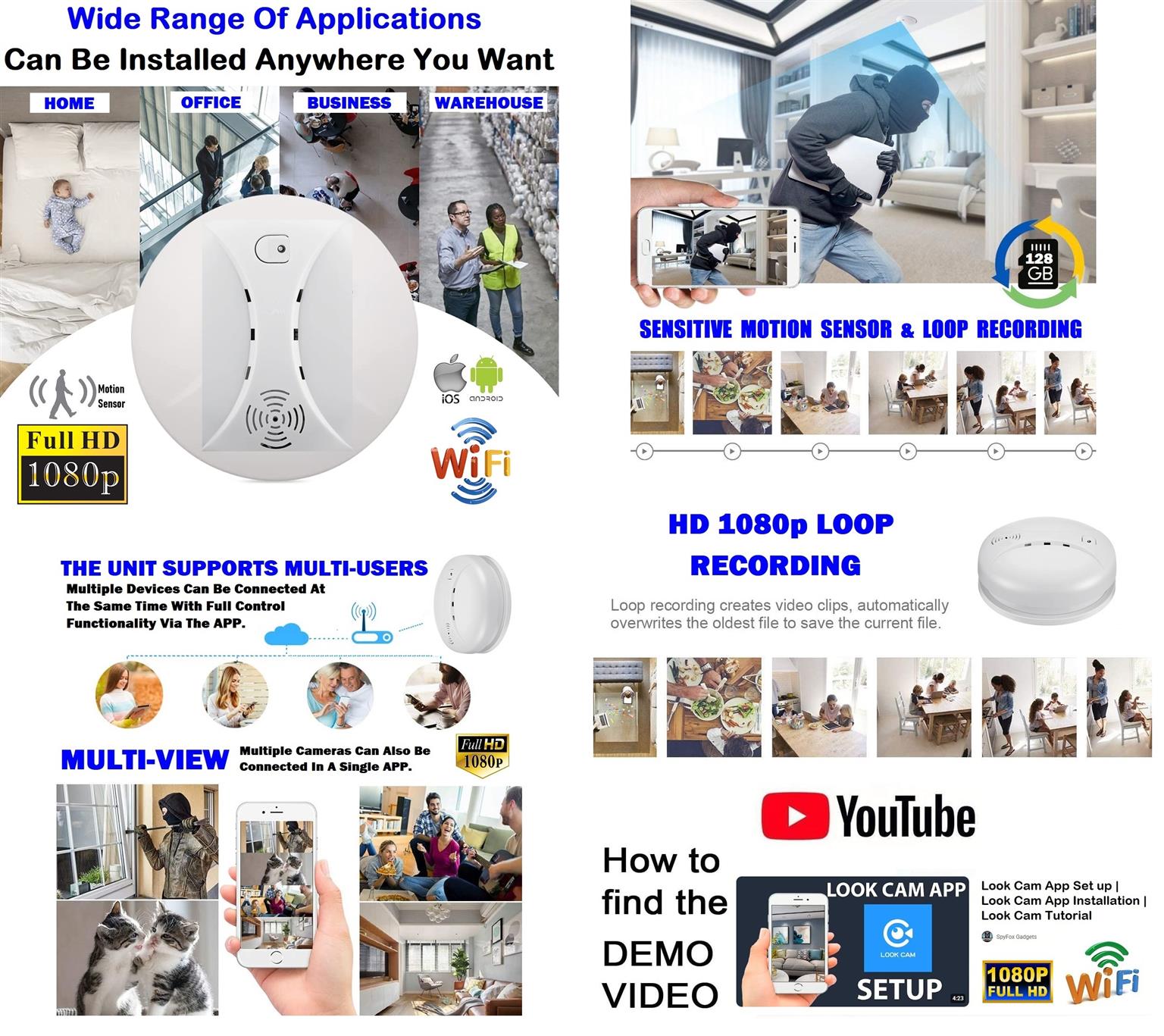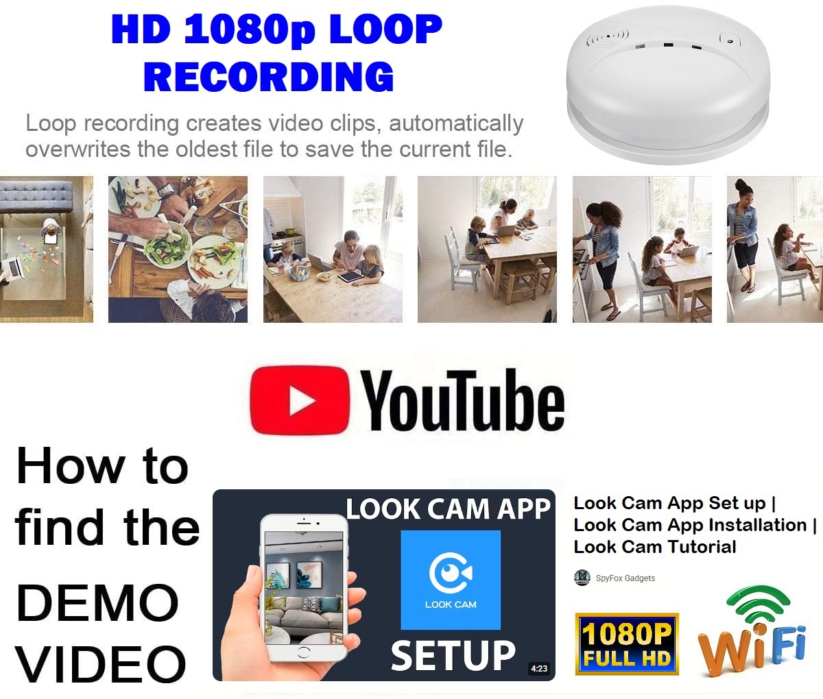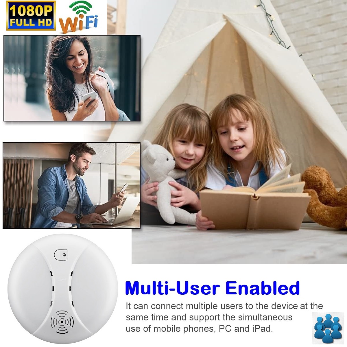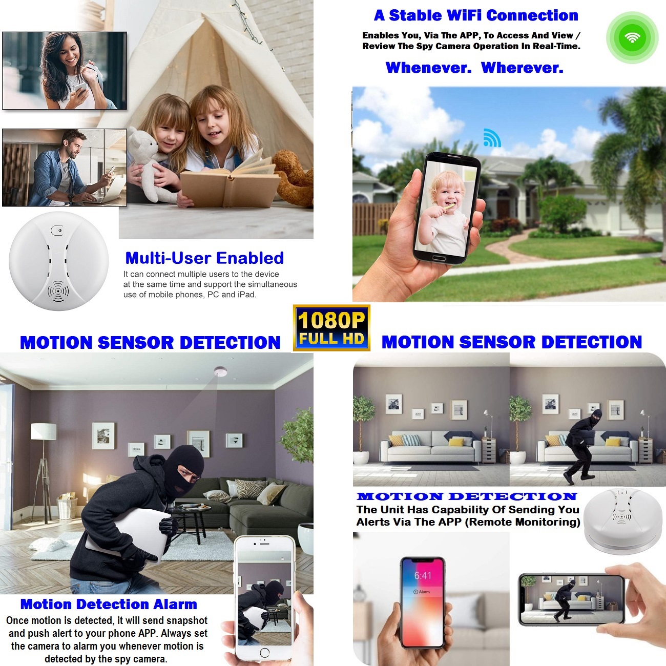 UNIQUE DESIGN: Disguised as a smoke detector (without real smoke detector function). Has a built-in Full HD hidden camera. Nobody will realize this is a hidden spy camera.